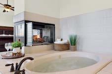 Luxurious Master Suite: Dual fireplace, Jacuzzi tub, and stunning views.