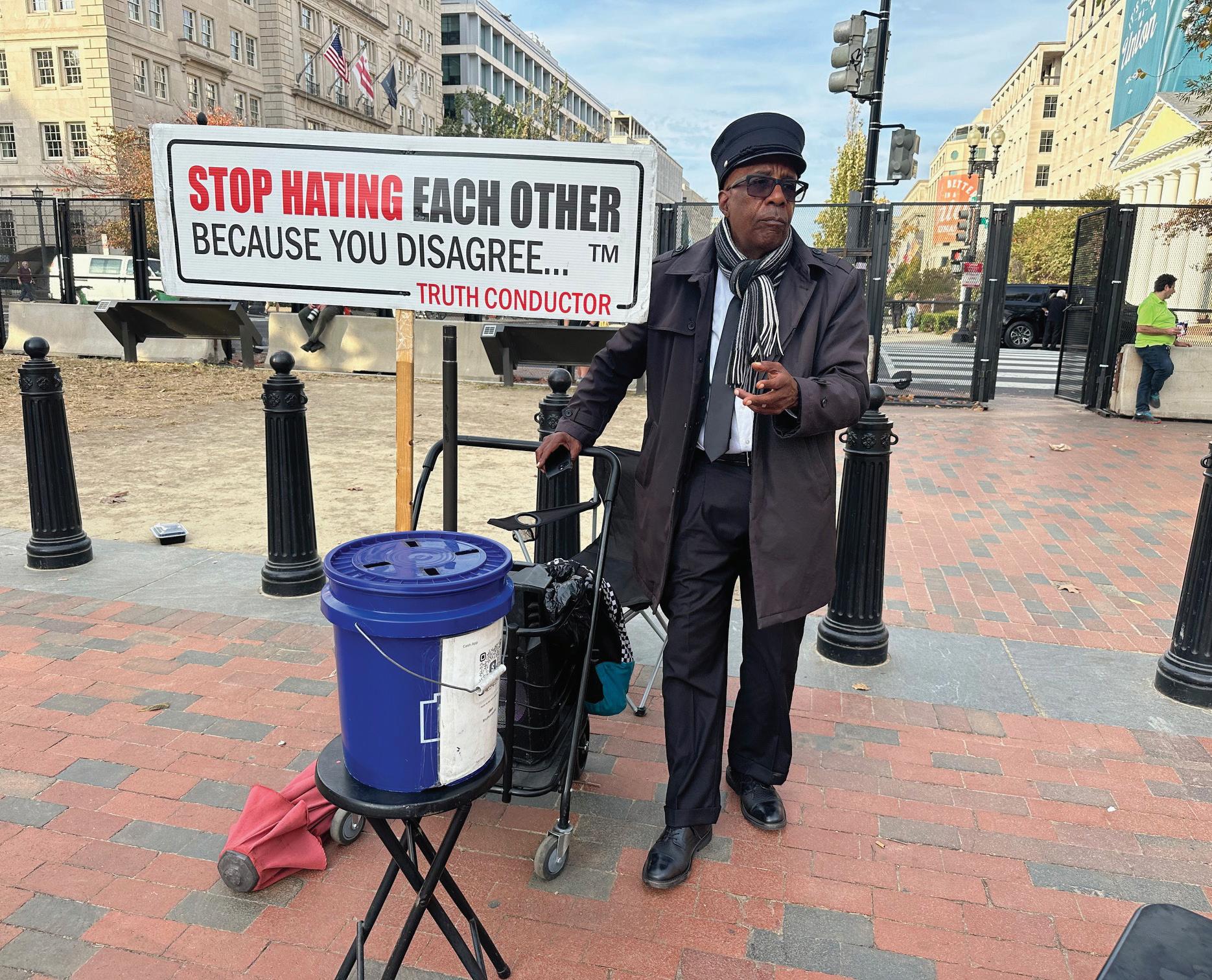 When I travel to witness history, I always try to take something away. Over the few days in Washington I was surprised at the level of our divisions between Americans. I saw countless heated arguments and the exchanging of insults from supporters of both Harris and Trump. ere was no speci c pro le on either side, and it was not quanti able to a single race, culture, age, or demographic.