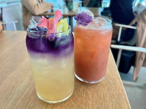 popular “aquazul” made with strawberries, lime, mint, ginger beer and a restrained measure of soda water. Or the “vacation exhibit” offers a blast of Vitamin C with its delicious combination of passion fruit, oranges and pineapples. Most of the drinks receive small measures of soda water for effervescence. There are also a couple of hearty, healthy smoothies available, along with the option of adding to them collagen peptides or a reishi mushroom blend, which is believed to protect brain cells.