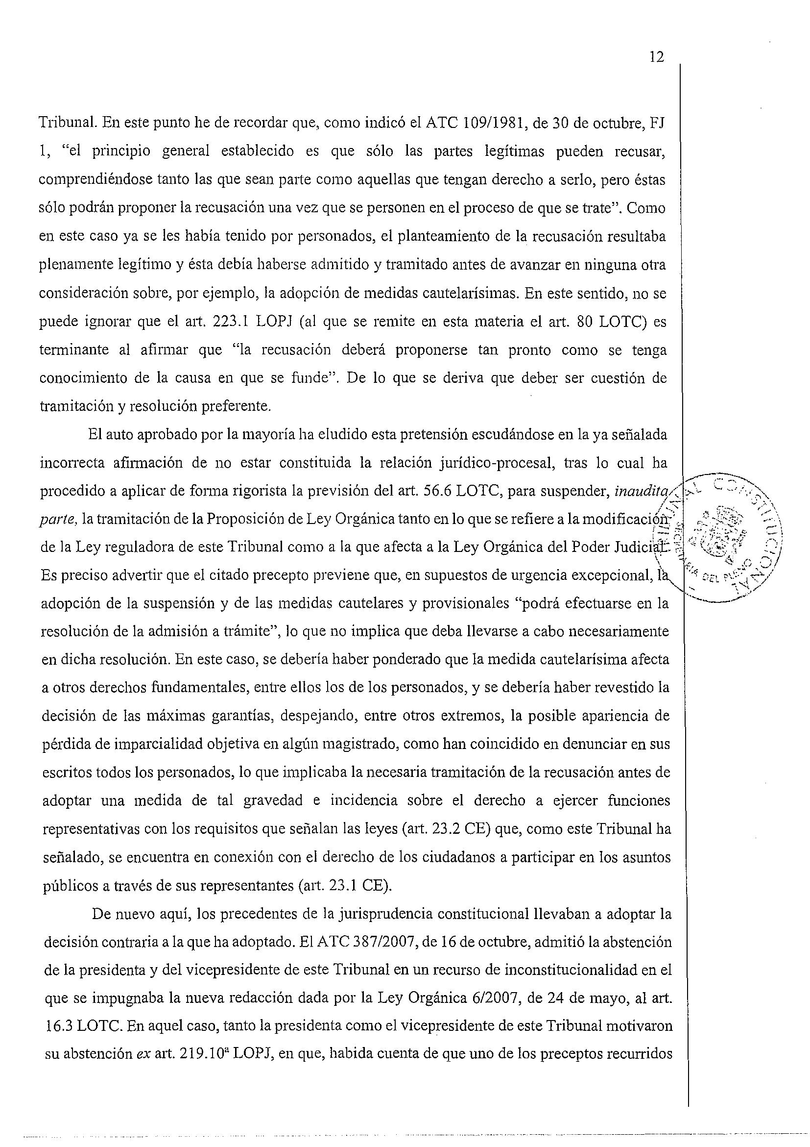 Auto del Constitucional y votos particulares