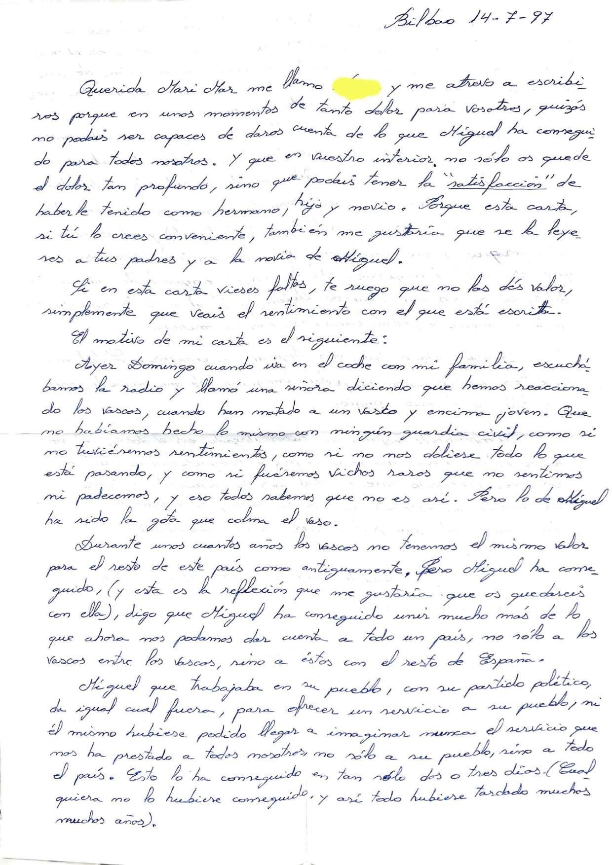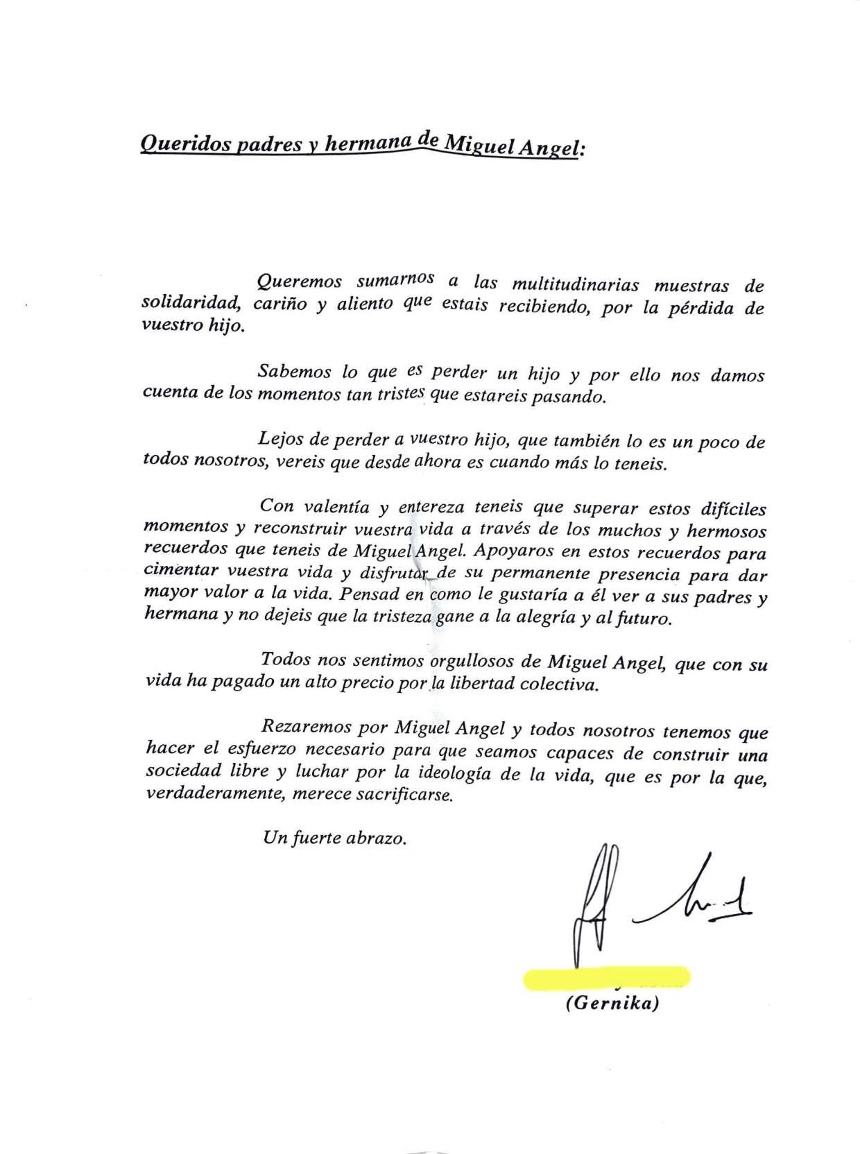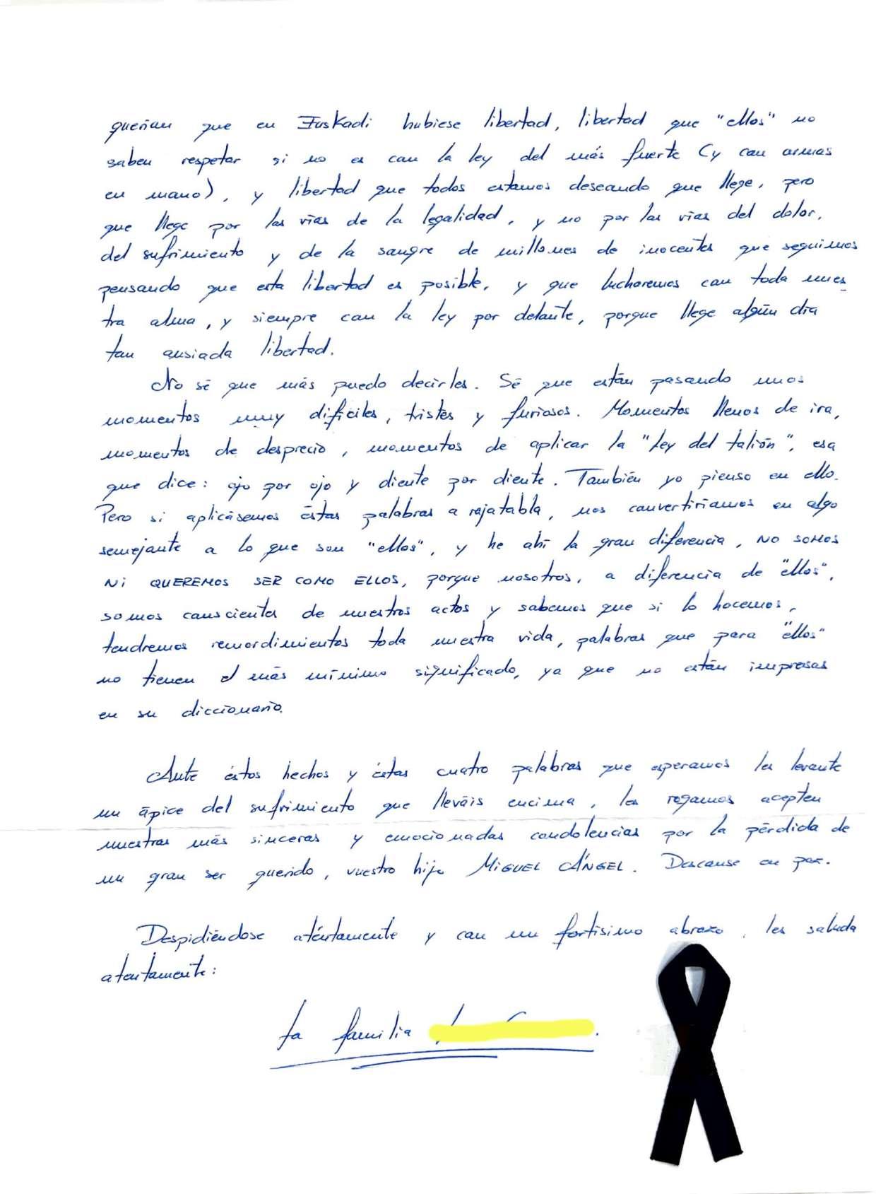 Cartas a familiares de Miguel Ángel Blanco