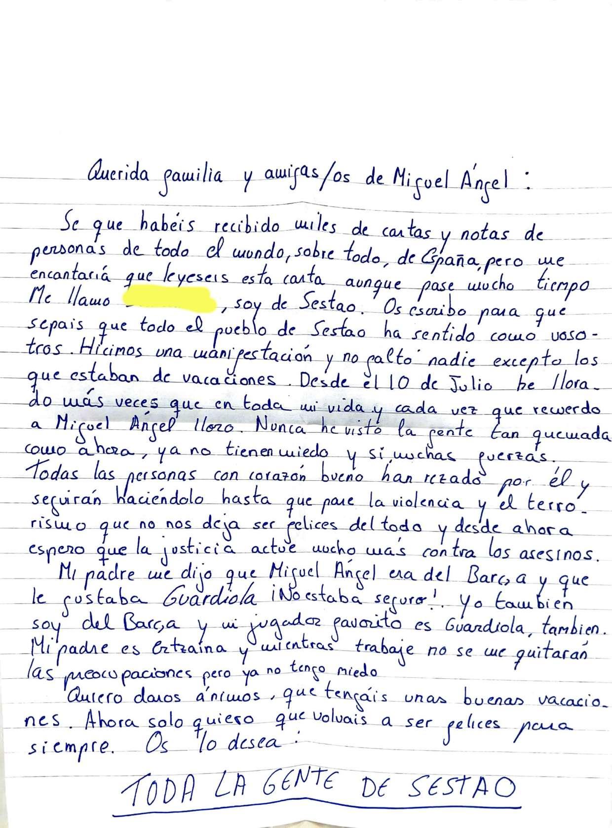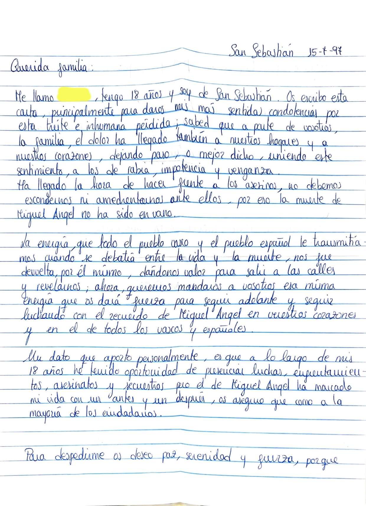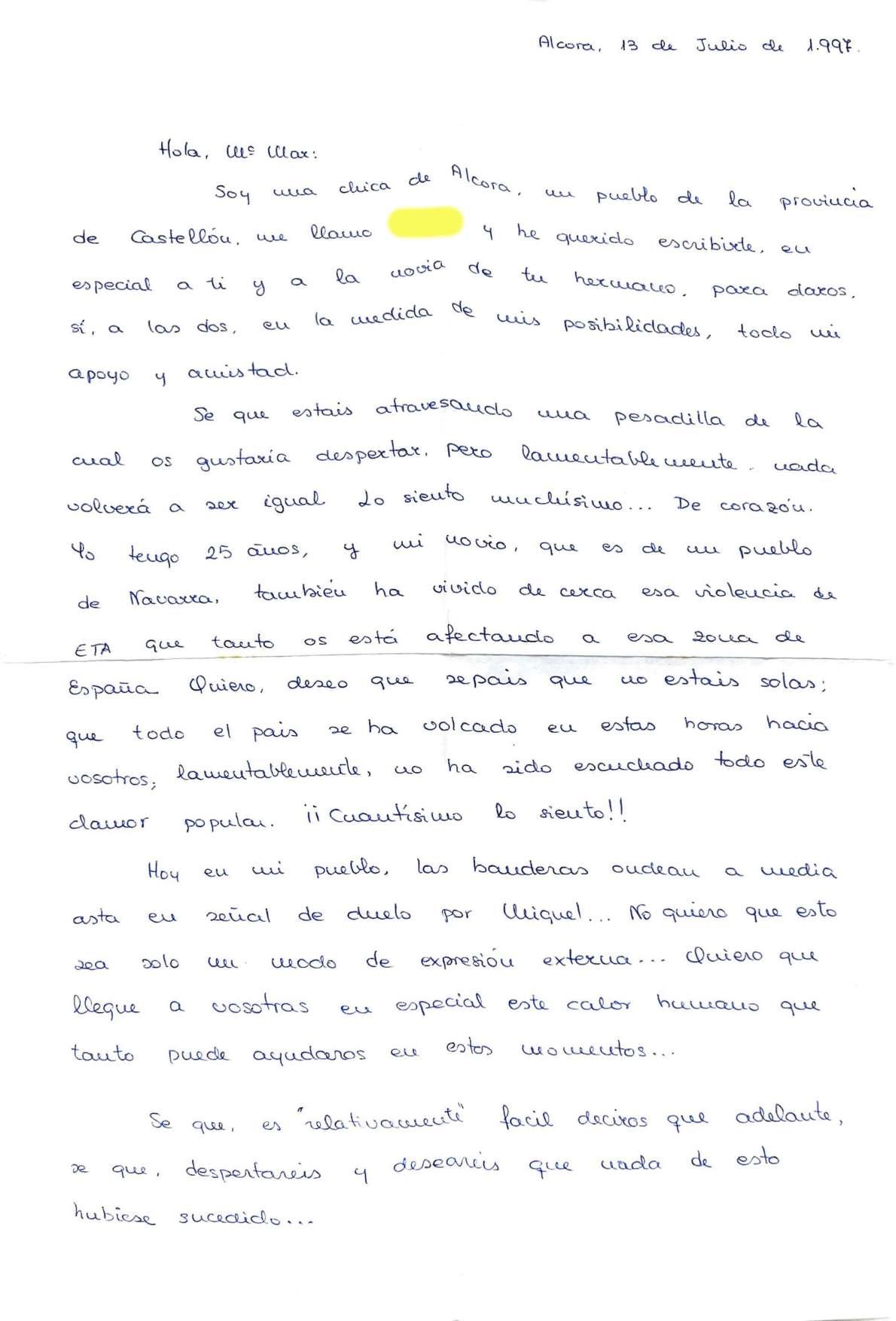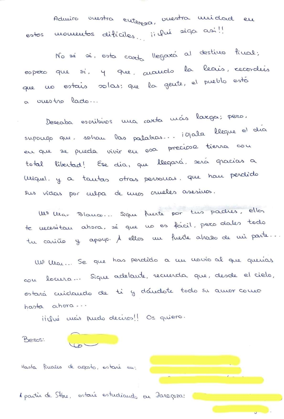 Cartas a familiares de Miguel Ángel Blanco