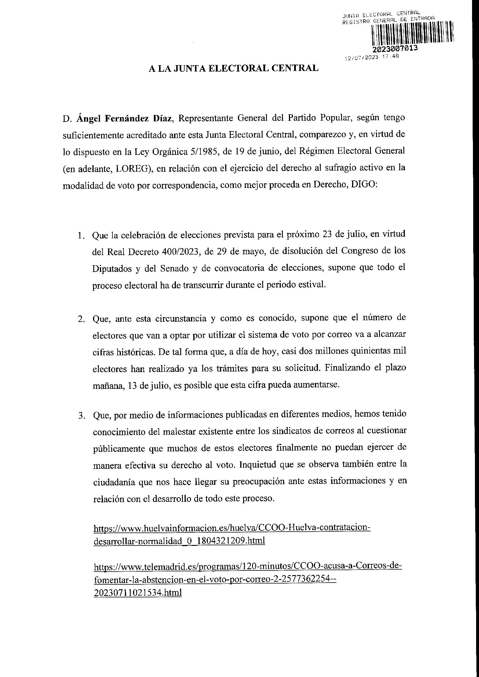 Solicitud del PP a la JEC para ampliar el voto por correo by FACTORÍA PRISA NOTICIAS S.L.U - Issuu