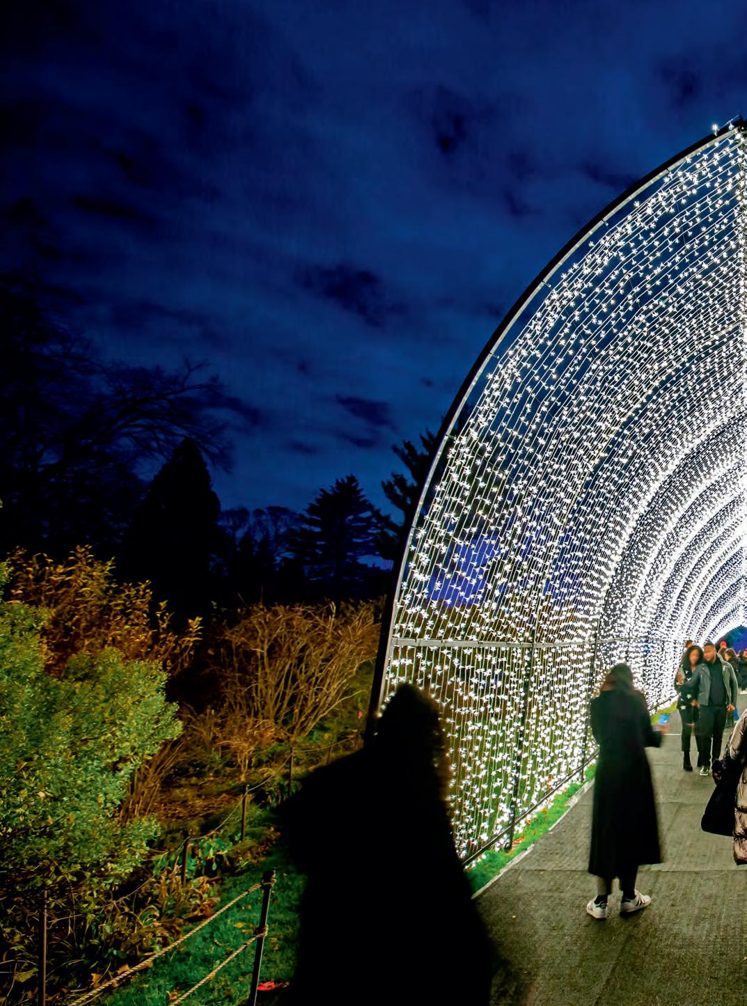 El 16 de noviembre, más de un millón de luces se encienden en el Jardín Botánico de Brooklyn para mostrar su belleza en invierno. Se trata del Lightscape, un paseo lleno de magia y encanto que se ilumina por las noches, hasta el 8 de enero, y por el que los visitantes descubren monumentales esculturas iluminadas, así como efectos coloridos en los árboles, la arquitectura y el agua, todo ello al ritmo de la música y los sonidos naturales del jardín. Esta experiencia inmersiva discurre por un camino sinuoso, accesible para todos, y en el que se han habilitado espacios específicos para poder tomar una bebida caliente. bbg.org
