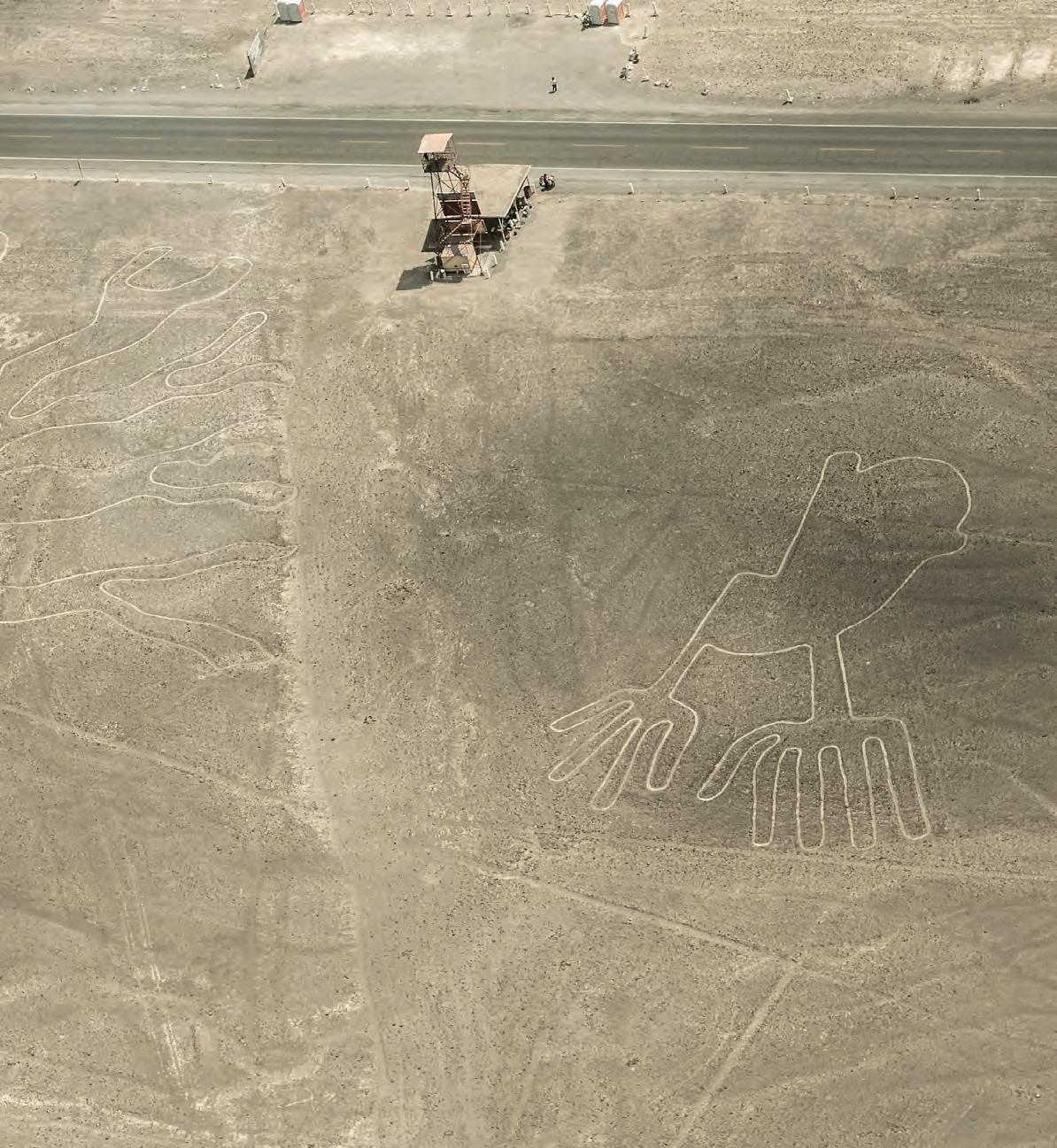 ENG There are works made by man that, despite being thousands of years old, never cease to fascinate for their spectacular appearance and the mystery they contain. Like the Nasca and Palpa lines and geoglyphs (south of Lima) dating back to the Nazca culture (100 AD - 600 AD), which are now celebrating 30 years since being listed as a World Heritage Site by UNESCO. Immense expanses of land crisscrossed by disturbing geometric drawings, as well as figures with animal and human forms drawn in the natural desert landscape as magical designs of pre-Hispanic societies. They were discovered in 1927, although there are already references to them in 1547 by conqueror Pedro Cieza de León. The best way to see them is to climb the nearby mountains or observation towers or, of course, you can have the adventure of flying over them in a light aircraft.