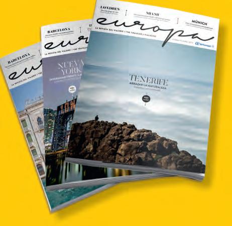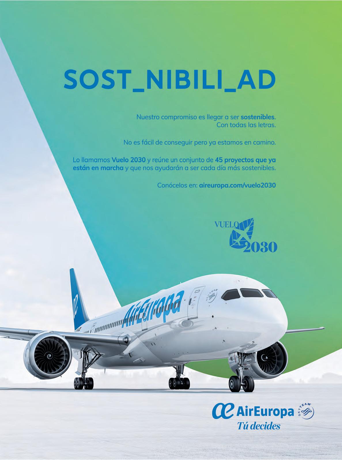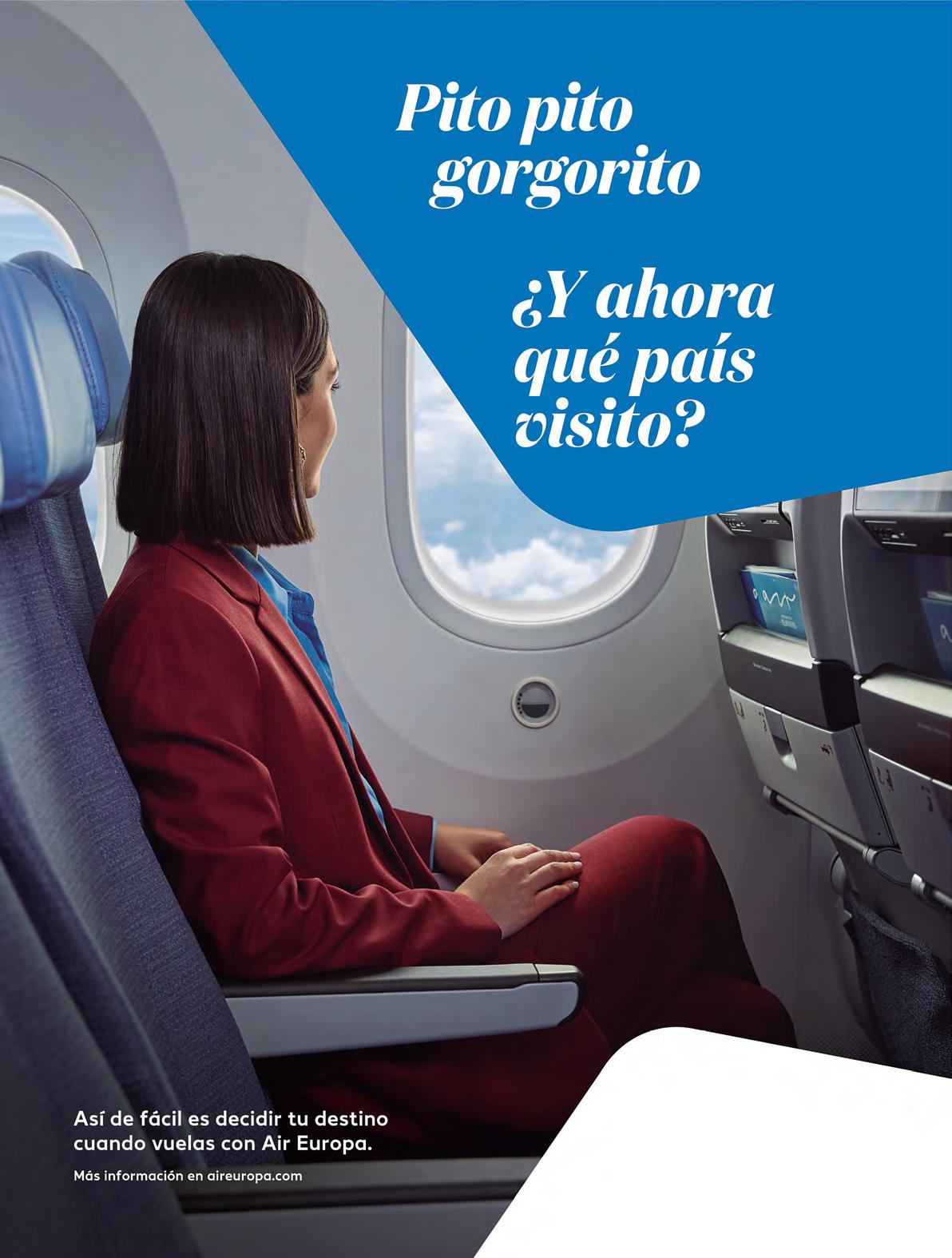 Directora: Virginia Lavín Subdirector: Javier Olivares Directora de proyectos: Inma Garrido Coordinación y edición: Mario Suárez / Carmen Otto Director de Arte: Pedro Díaz Ayala / Andrés Vázquez Diseño: Rodríguez y Cano Edición gráfica: Rosa G. Villarrubia Secretaria de redacción: Cristina Ortega Impresión: Rotocobrhi Publicidad: Premiummedia Global Services Directora general: Nuria Español Director comercial: David Durán premiummedia@premiummedia.com.es Depósito legal: M 35149-2023. Agencias de foto: Getty Images, Cordon Press. AIR EUROPA LÍNEAS AÉREAS SAU. Dirección de Producto & Clientes. AIR EUROPA ON LINE: 902 401 501. www.aireuropa.com Las opiniones vertidas por nuestros colaboradores en estas páginas son de su exclusiva responsabilidad y no coinciden necesariamente con la línea editorial de EUROPA Todos los derechos reservados. En virtud de lo dispuesto en los artículos 8 y 32.1, Párrafo segundo, de la ley de propiedad intelectual, quedan expresamente prohibidas la reproducción, la distribución y la comunicación pública, incluida su modalidad de puesta a disposición, de la totalidad o parte de los contenidos de esta publicación, con fines comerciales, en cualquier soporte y por cualquier medio técnico, sin la autorización de la empresa editora de la publicación.