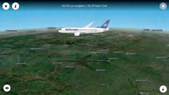 FlightPath3D es el mapa de vuelo que Air Europa ha incorporado en los sistemas de entretenimiento de sus B-787. Es el más avanzado y muestra representaciones realistas y detalladas del avión en el que estás volando sobre un fondo terrestre en 3D con los datos de tu ruta. Es interactivo y puedes navegar en él para investigar datos sobre tu vuelo.
