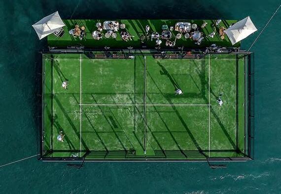 Una pista de pádel flotante en la bahía A floating paddle tennis court in the bay