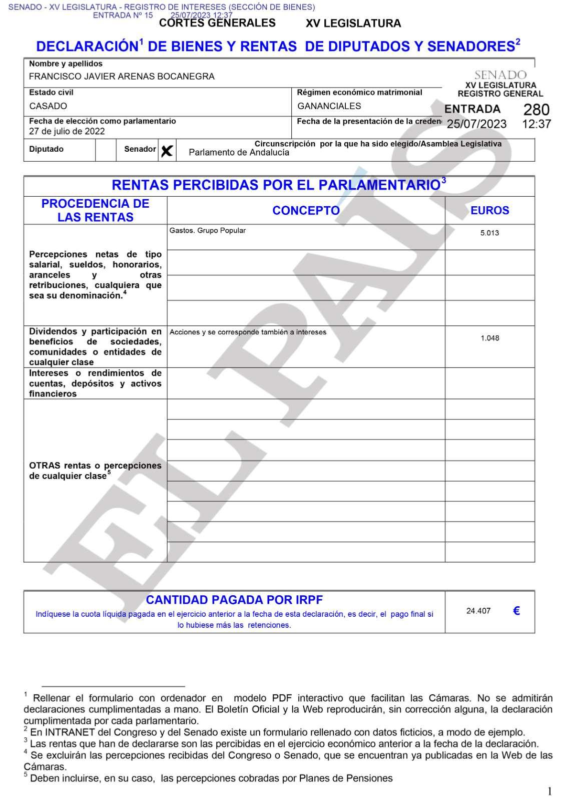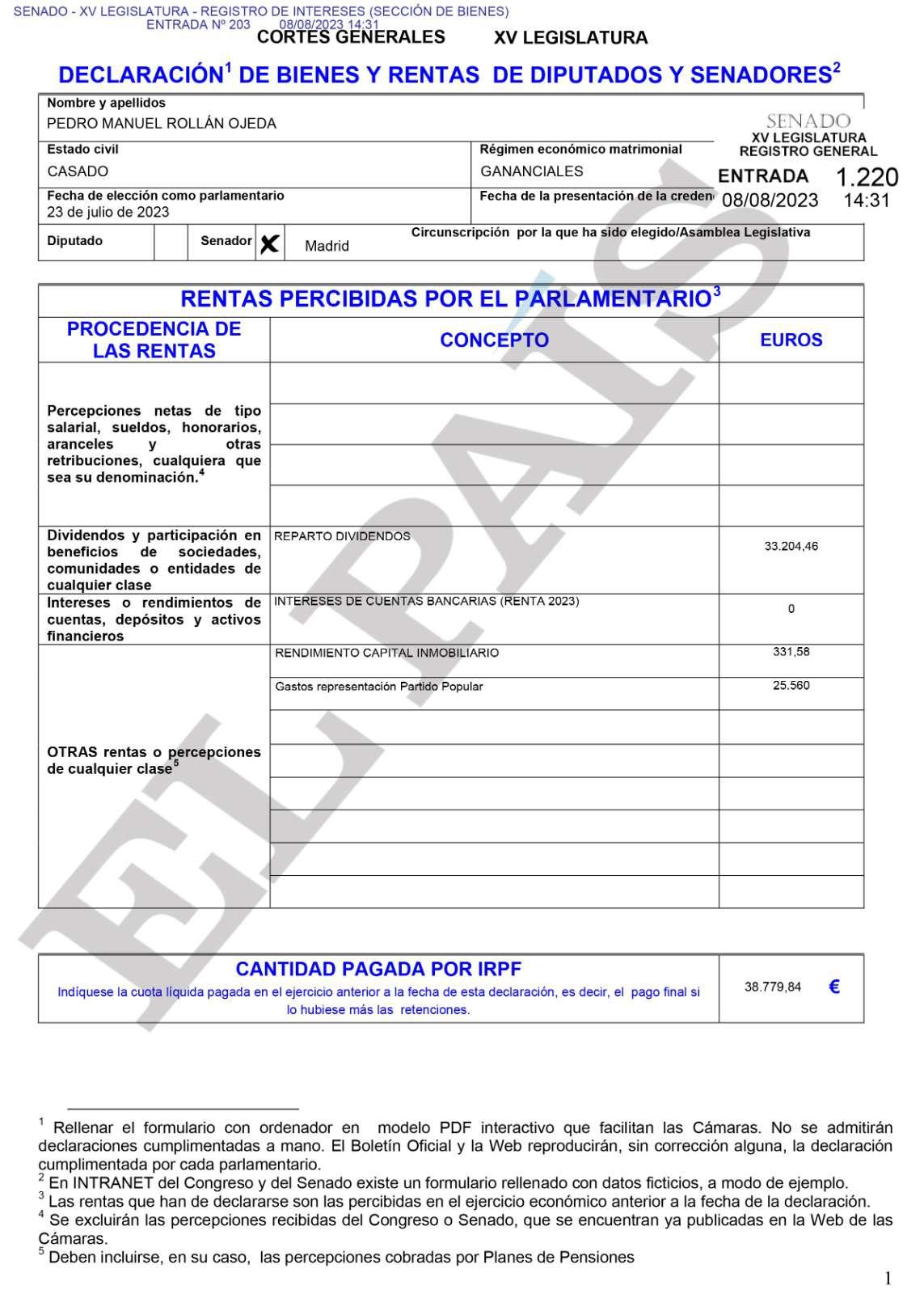 Declaraciones de bienes de Rollán, Bendodo y Arenas