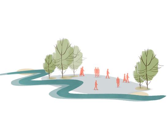 The character image illustrats on how people can uti lised the riverfront park and with the proposed guide lines how urban form can be shaped
