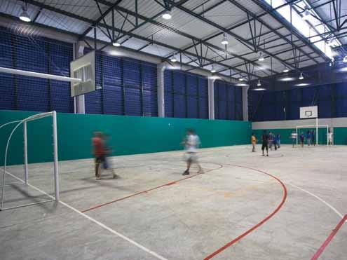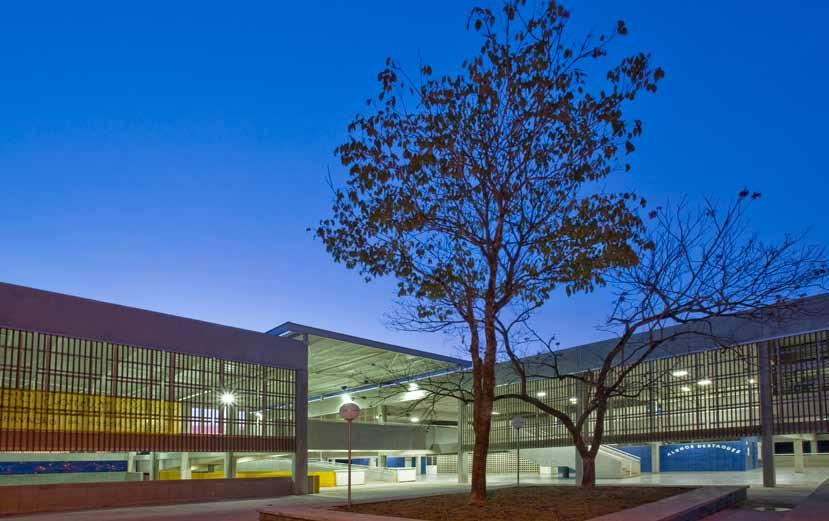 O projeto do CEU Guarulhos Pimen tas e sua generosa cobertura em aço valorizam a criação de um local para estudos, esportes e lazer, oferecendo aos estudantes, professores e usuá rios um espaço de encontros moderno e agradável. (e.F.) M