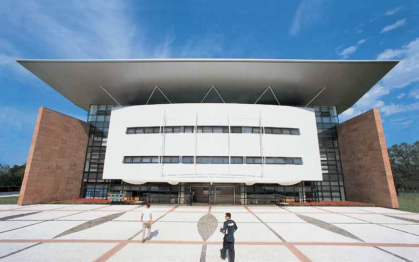Localizado na capital paranaense, o campus vem sendo construí do há dez anos e sua arquitetura explora as inúmeras possibilidades estéticas do aço. Projetado pelo arquiteto Manoel Coelho, a ideia central da reitoria era tirar partido das excepcionais condições natu rais do sítio, valorizando-as com a ampliação da área do lago e com a recuperação de trechos degradados de matas naturais.