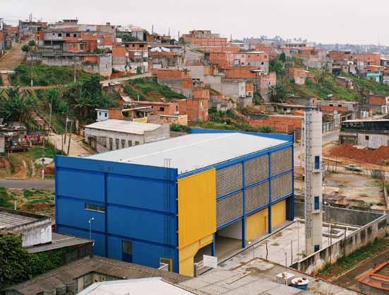 Uma das característi cas do projeto é o forte apelo cromático, utiliza do para ressaltar a pre sença do edifício público em áreas degradadas