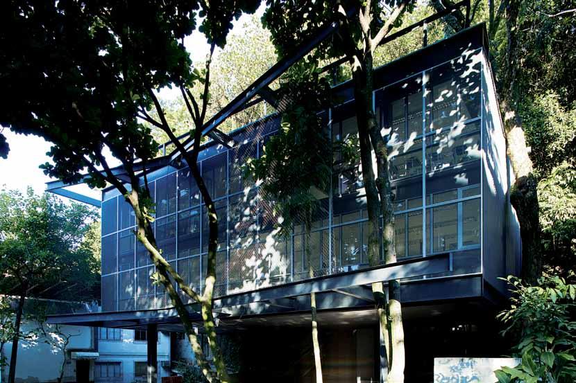 ratura interna é controlada por bri ses metálicos e grandes beirais, e pela ventilação cruzada, a partir da criação de caixilhos internos que permitem a circulação de ar.