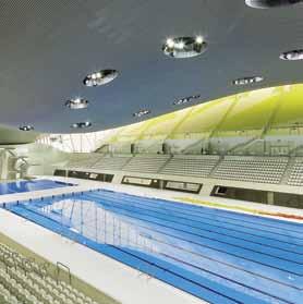 A área total construída do Centro Aquático é de 42.866 m2, o sufi ciente para acomodar 17,5 mil espectadores durante os Jogos de Londres 2012, no seu modo “olímpico”. Para isso, foram construídos dois pavilhões temporários em aço, que receberam as arquibanca das extras. Ao final dos Jogos, estas duas estruturas serão remo vidas e recicladas, reduzindo a capacidade do local para 2,5 mil lugares em 2.529 m2. Para os arquitetos, a vantagem é que o espaço é flexível, pois na ocasião de grandes eventos na cidade ainda pode rão ser adicionados mil lugares.