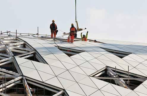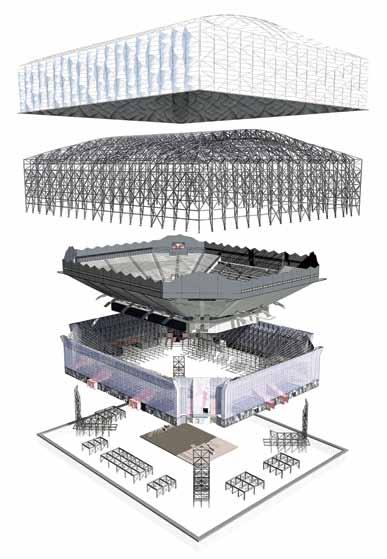 isolasse as condições climáticas exter nas, em função até do desempenho dos atletas. O segundo era o forte desejo de reduzir os componentes da estrutura para garantir a leveza”, explica um dos engenheiros responsáveis, Chris Wise, completando que este duplo desafio apresentou o maior obstáculo de enge nharia estrutural do projeto.