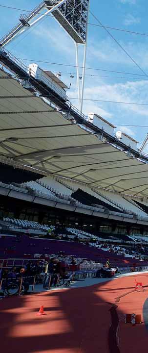 O Olympic Stadium de Londres tinha, durante as competições, capacidade para 80 mil espectadores – a expectativa do COI era de que cerca de um milhão de pessoas passasse pelo local durante os Jogos Olímpicos. Sua estrutura atual compreende, além da grande arquibancada e arena esportiva, vestiários, sanitários, estaciona mentos, lanchonetes, lojas, departamento médico, entre outros ambientes. Pensando no uso do espaço após as Olimpíadas, tam bém já conta com uma creche, um café independente, um estúdio