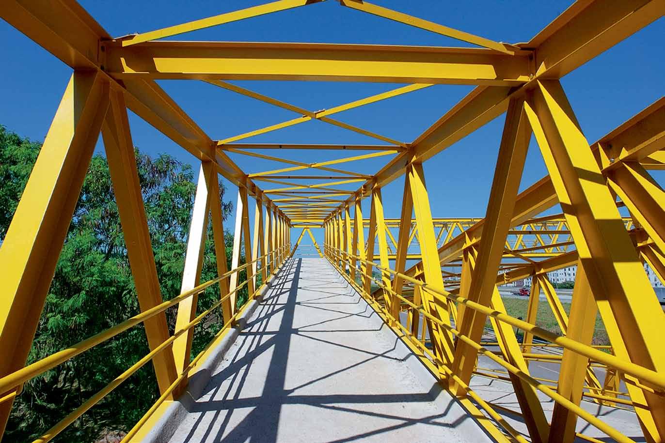 Todas as treliças são formadas a partir de perfis de seção “H” fabricados especialmente para a obra. As espessuras das chapas das seções dos perfis variam ao longo do comprimento das peças para assegurar o uso eficiente do material, compreendendo entre 8 mm e 120 mm. No local, os membros foram aparafusados para produzir peças estruturais de 30 m a 40 m de comprimento.