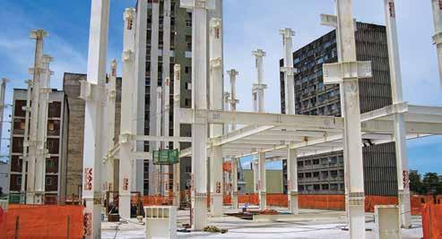 Segundo Paulo Oliveira, diretor de engenharia da JHSF Empreendimen tos, além de possibilitar a redução no prazo de execução da obra, a adoção de elementos e conexões pré-fabricados, especialmente de estruturas de aço, auxiliou na redução do peso estrutural. Com isso, foi possível utilizar equipa mentos de montagem de menor porte no canteiro de obras.