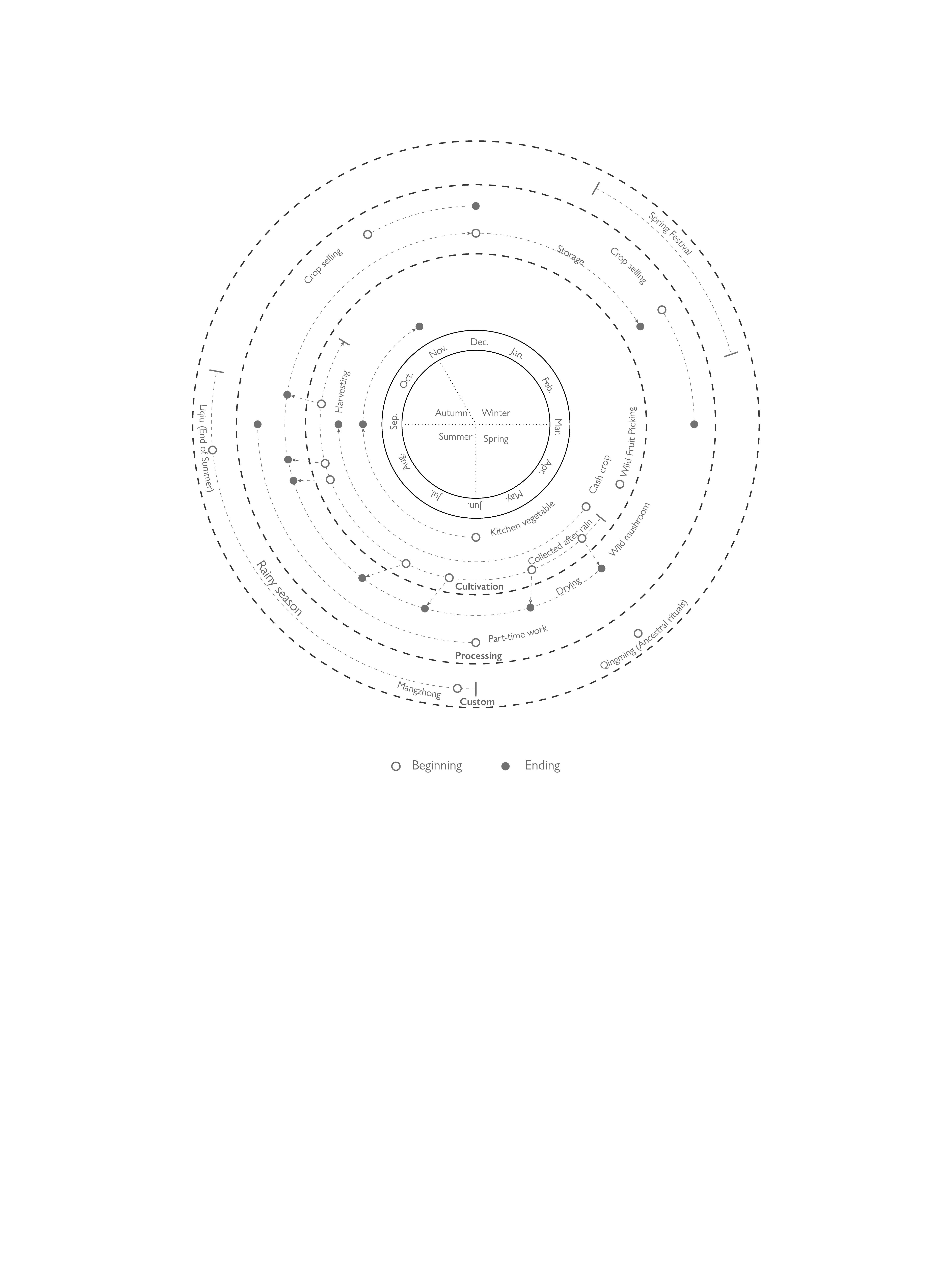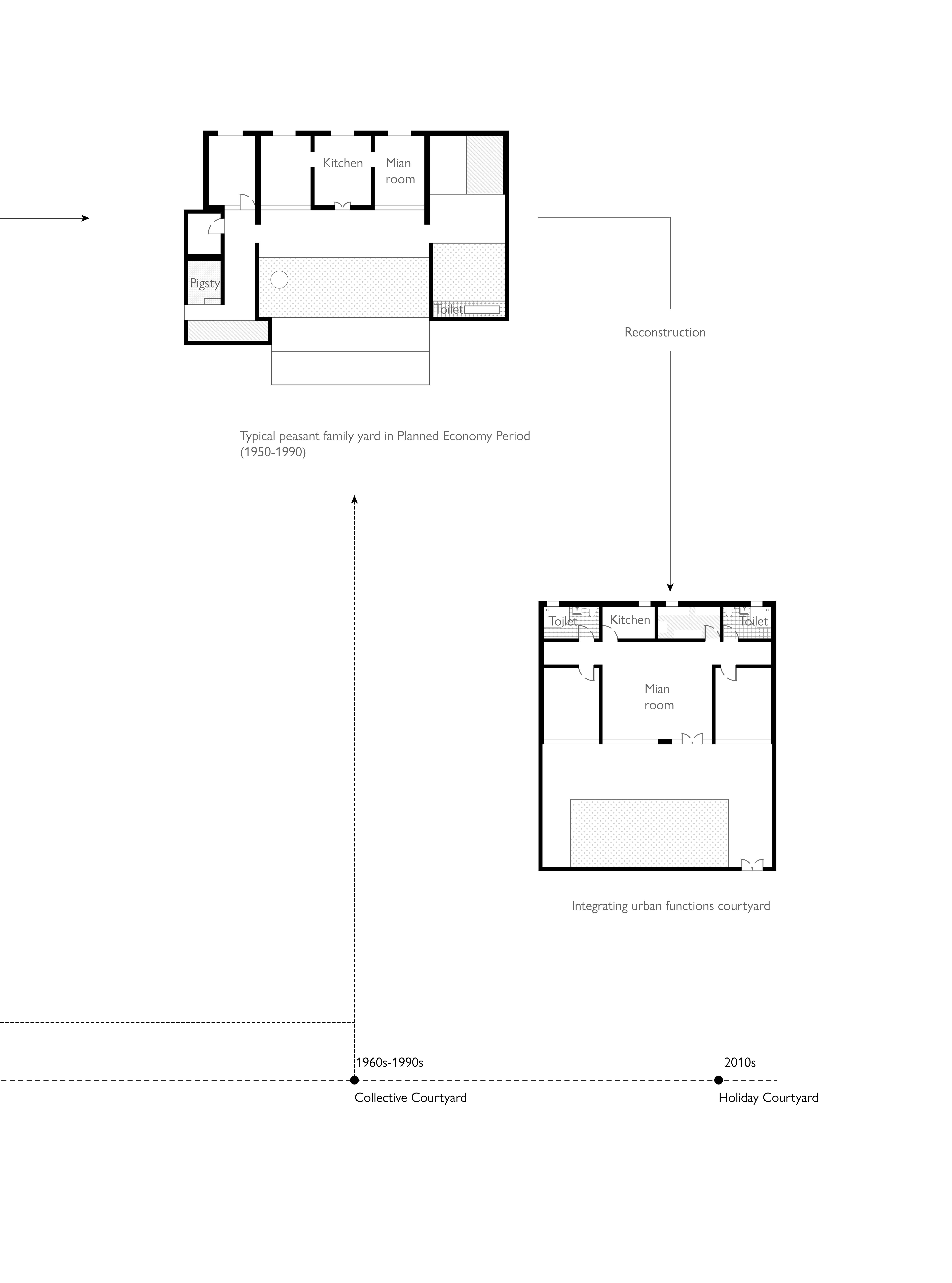 However, from the internal perspective of village life, the idealization are not a desire for landscape, but rather a focus on pragmatism of village and it environ. The fever of immersing in nature, opening up wasteland and creating quaint society reveal the potential of this traditional form of live to cooperate not only within one another, but also with the environment. The research is based on the mountain villages of Beijing as a case to retrace the co-environ village life. Historically, this reveals the spatially cooperative activities of different groups, such as families, kinship networks, and production collectives, as well as family gatherings, farming, and festival rituals. These daily rituals occur in spaces closely linked to the environment, such as hamlets, farmlands, and natural spots. They are not nature, but exist as border territories, thus defining a continuous and hybrid landscape.