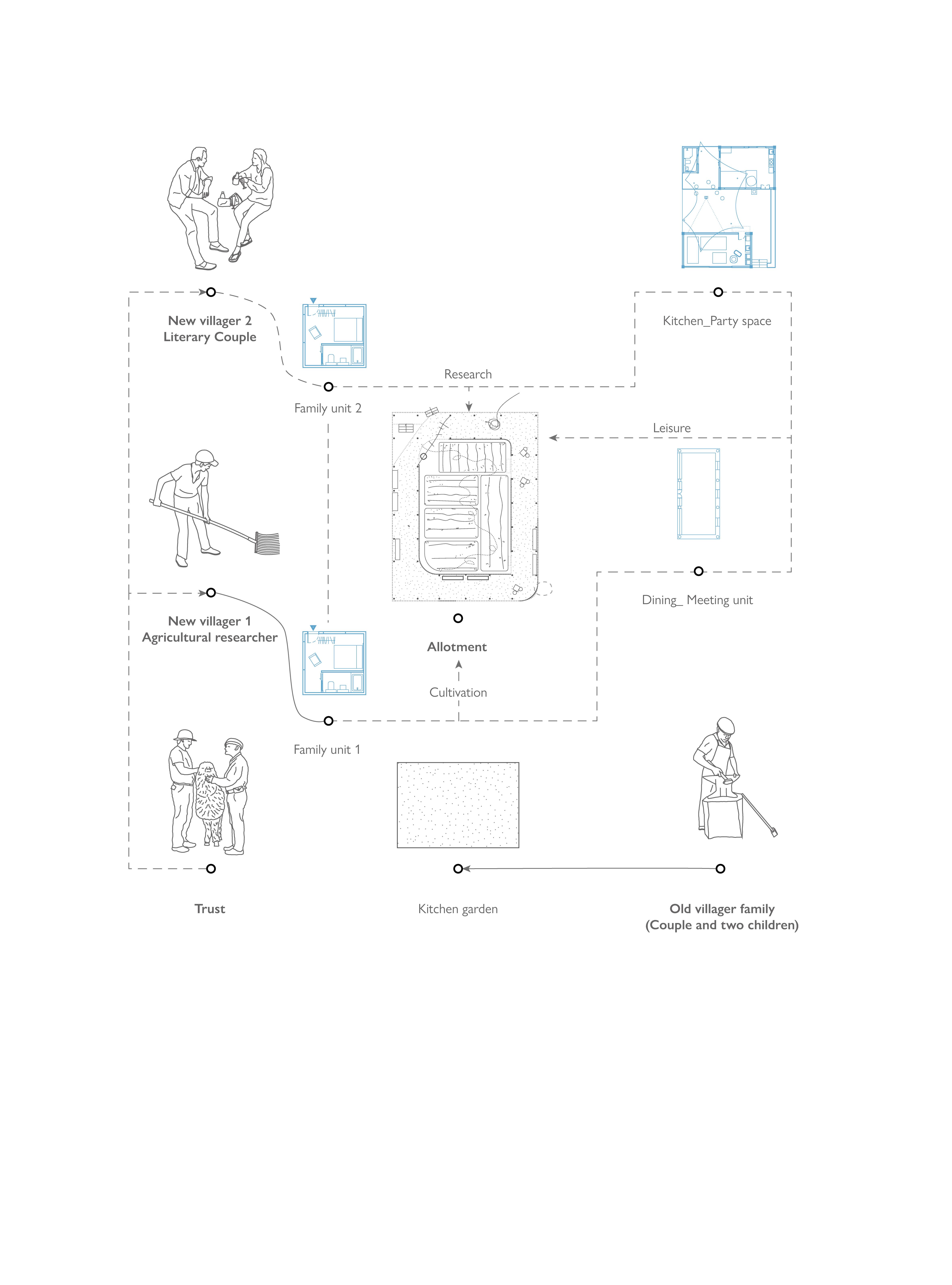 The core of the argument is to rediscover and deconstruct the daily rituals of village cooperation; By articulating these co-environ devices, the project proposes to unravel the diagrammatic relations that describe the contact between collective organization and cooperative space.