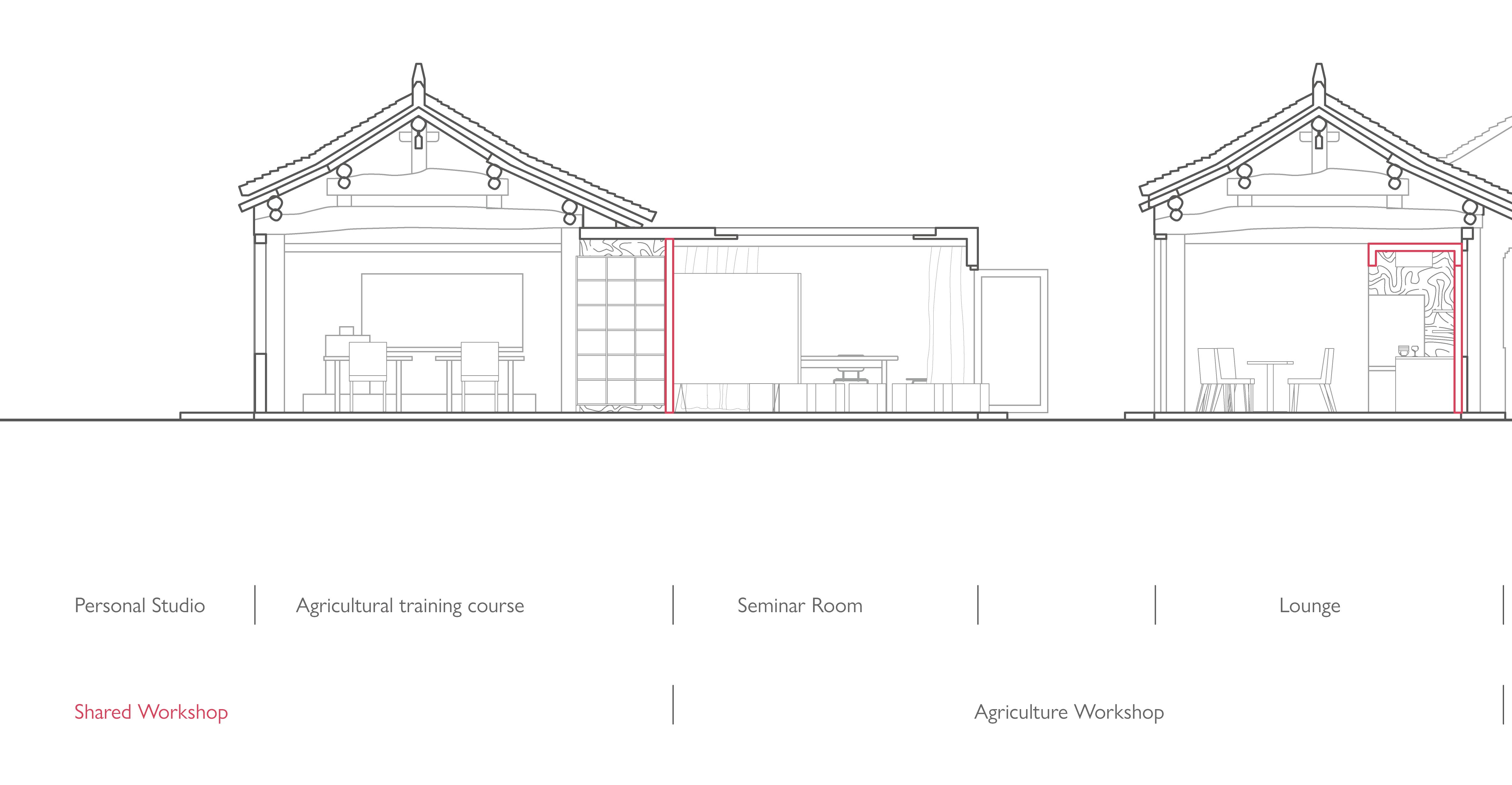 The process of urbanisation has led to the integration of urban and rural lifestyles, creating a trend of ‘returning to the countryside’. This has resulted in the emergence of rural flight and gentrification in the village.⁶ In 2008, the Chinese government introduced the concept called 'basic farmland'⁷ and set a red line of 1.8 billion mu of farmland, which meant that agricultural production was still considered extremely important in the urbanisation process. However, this has led to a long-standing misconception that the countryside still belongs entirely to the farmers. From an administrative point of view, it is true that the village host a large number of farmers, but spatially, rural settlements and environments are moving towards a functional separation: on the one hand, the productive elements of the countryside are being replaced by advanced mechanical production, with farmland thereby becoming part of urban industry; on the other hand, the rural landscape is being extracted, from an urban perspective, into a middle-class idyllic imaginary. This results in the rural settlement as a collage of unstable forms, which also participates in the