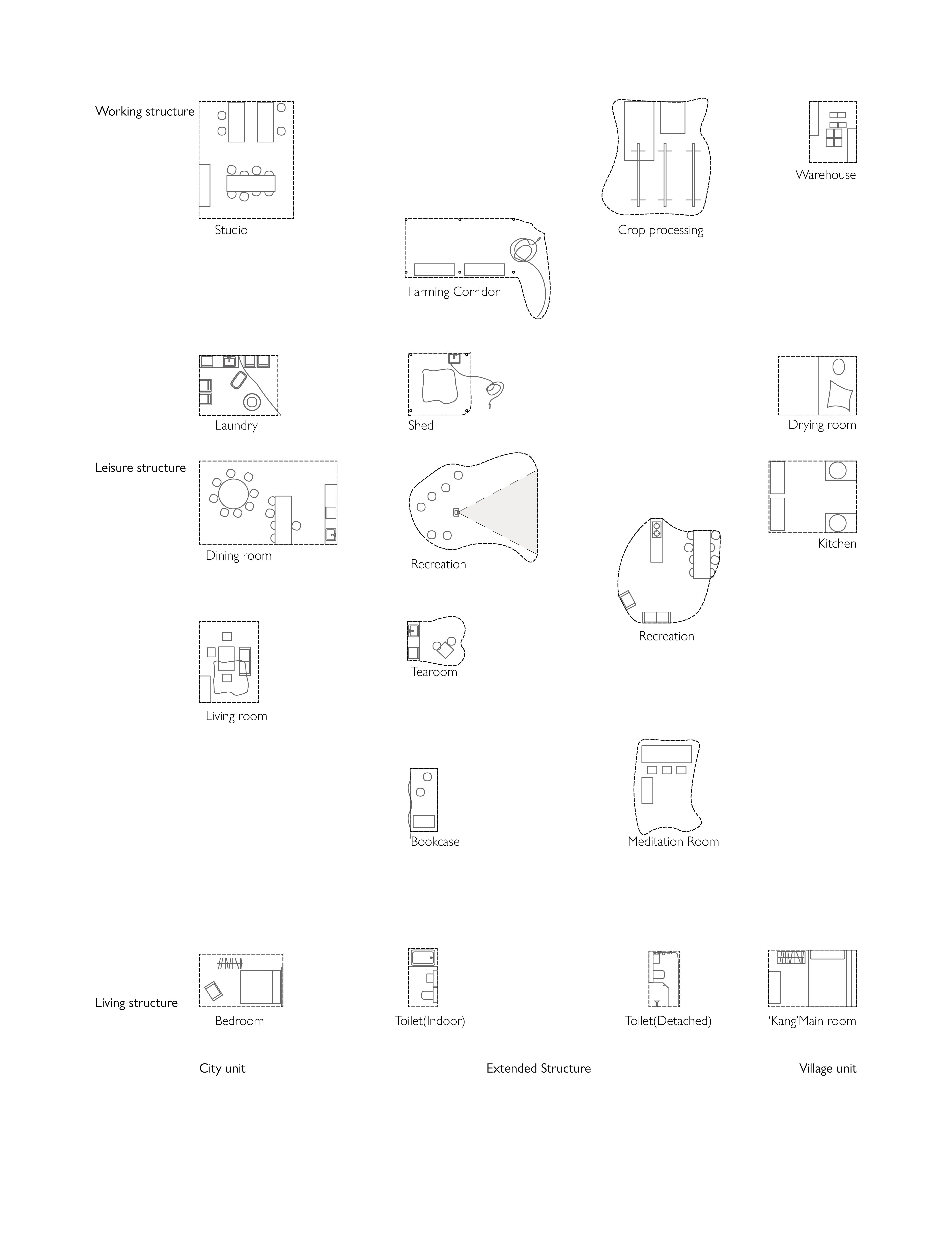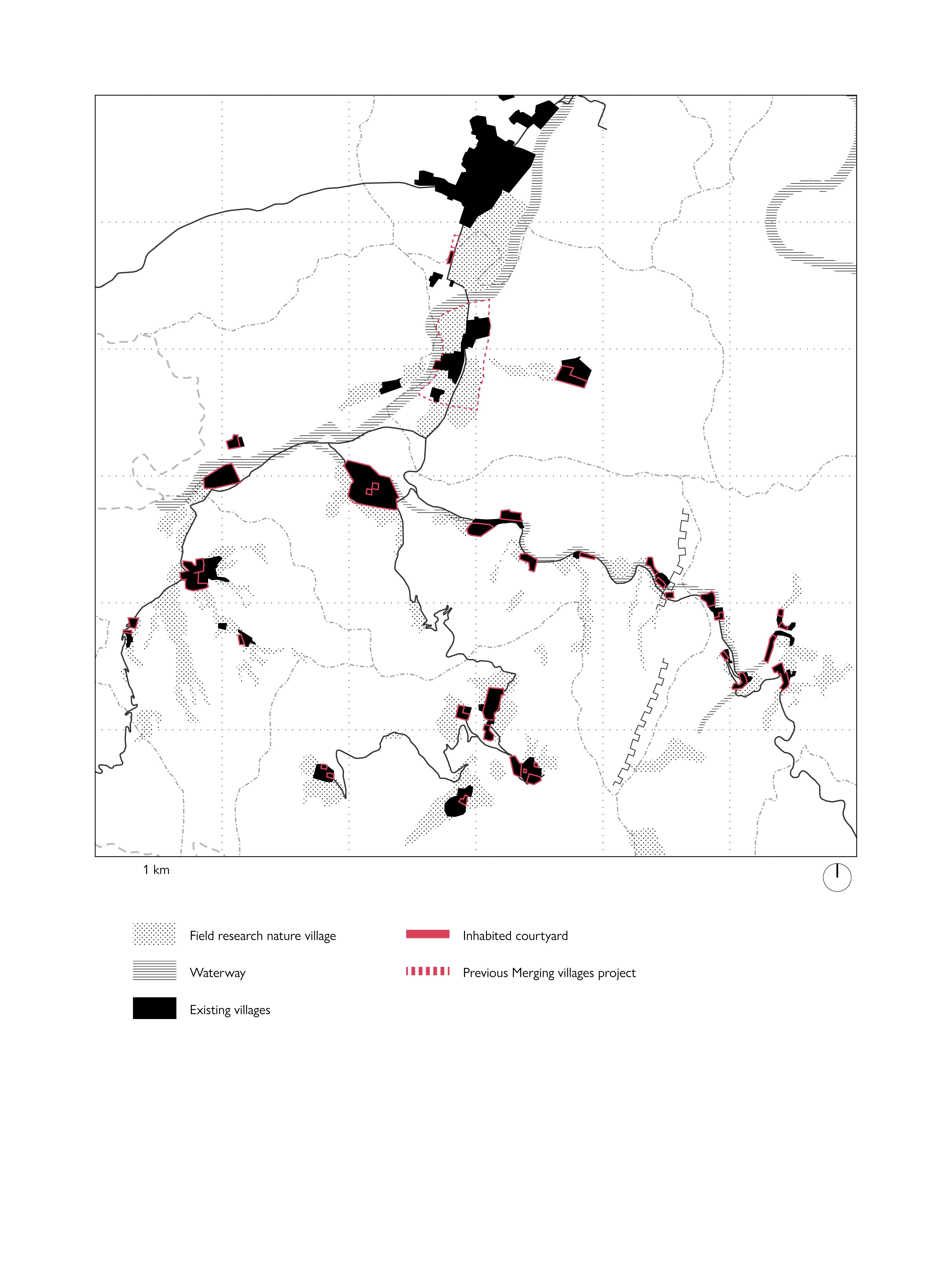 The idealistic kernel of the traditional village has the potential to be sustainable and transformative in the impact of urbanisation with the sense of being shared by the environment. The dissertation identifies this environment-led mode of settlement as co-environ, and seeks to deconstruct the farming-based idealisation of the village, using the co-environ as a framework for reconceptualising the connection between the village and its environ. co-environ produces a village that is different from the produced by collective, and emphasis on the fundamental position of the environment within the locality.⁹