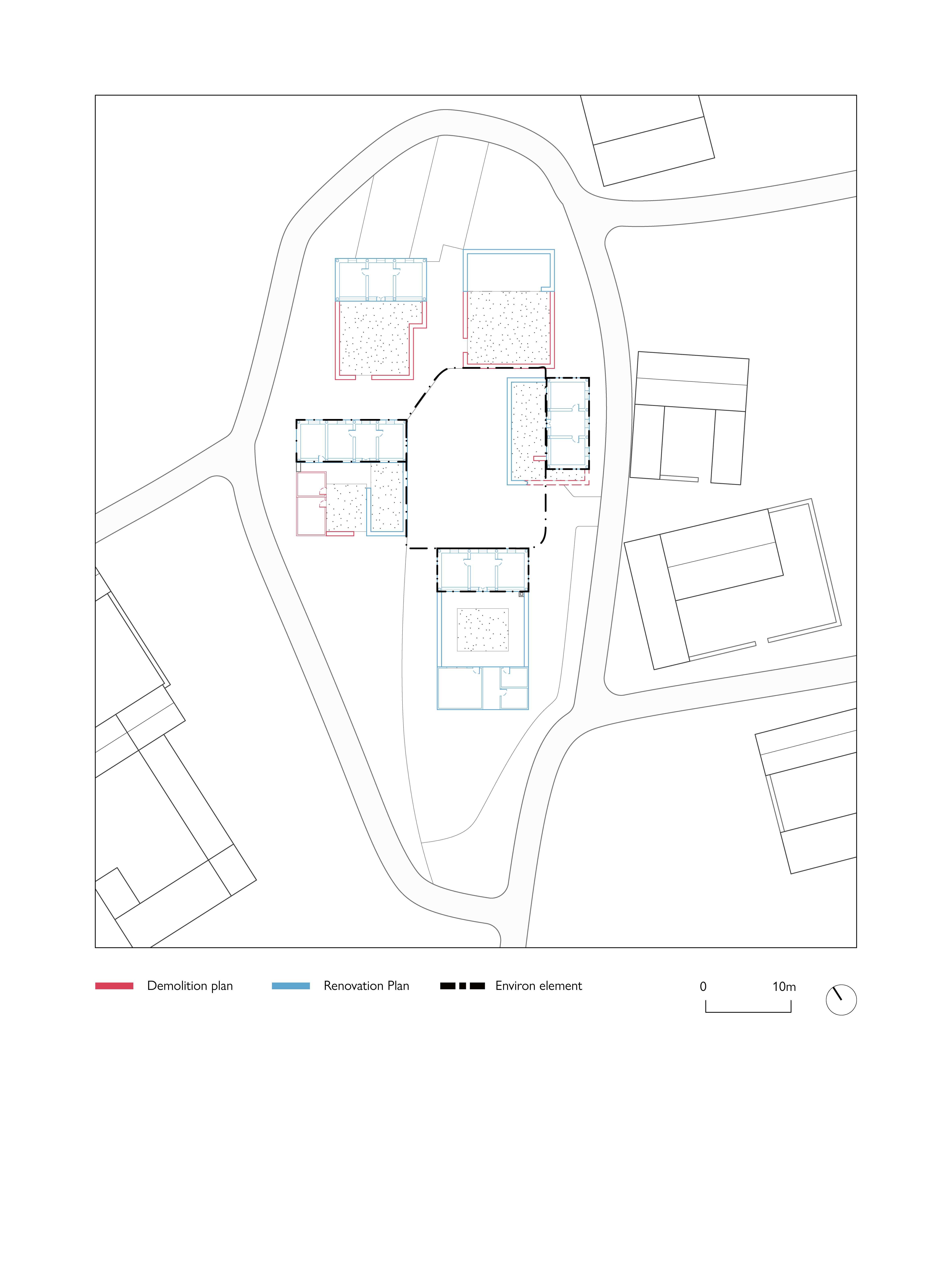 The dissertation investigates and emphasises the spatial relevance of the cooperation generated by people and the environment in the process of forming communities. Based on a retracing of the coenviron approach and the test of potential futures, which examines how the village can serve as a hybrid spatial network to organise the combination of new urban and rural communities. This transcends long-standing stereotypes of urban communities and challenges the previous position of China's rural areas in the definition of urbanisation, allowing them to live sustainably under a non-agricultural model. C o-environ does not seek a new idealisation, but rather offers a new model of transformation for the rural areas by emphasising this relevance to the environment, and the architecture makes the transformation an ongoing project, with villagers' self-build as the opportunity, the foundational of the environment to be emphasized, so viewing it as a new potential strategic plan for urbanism.