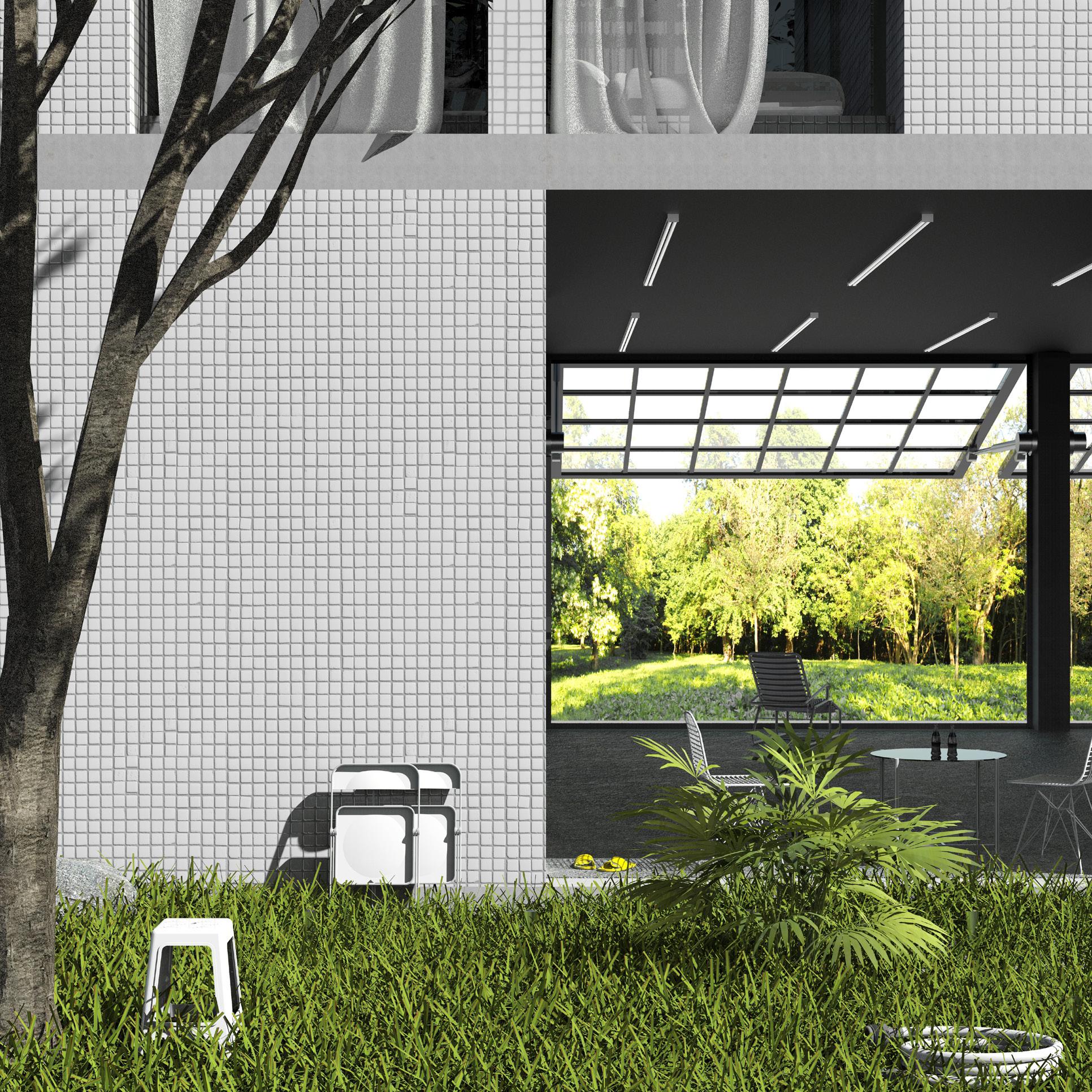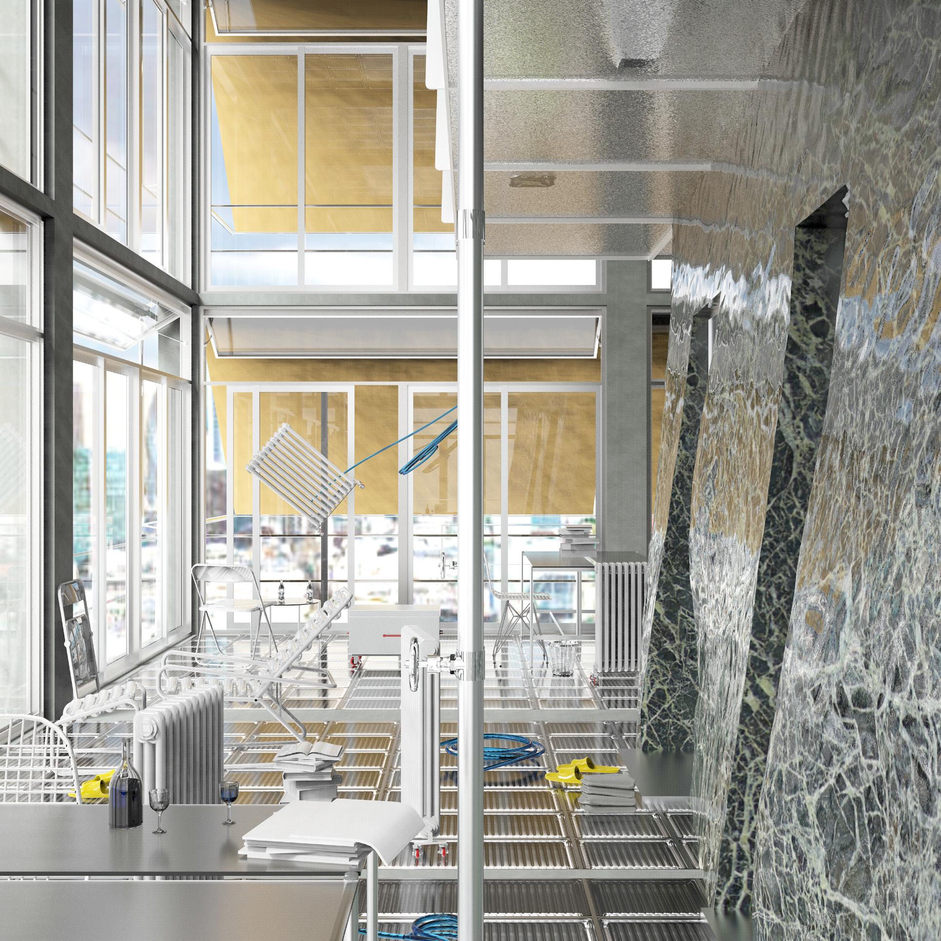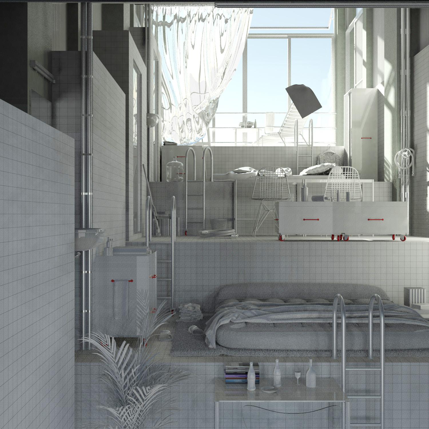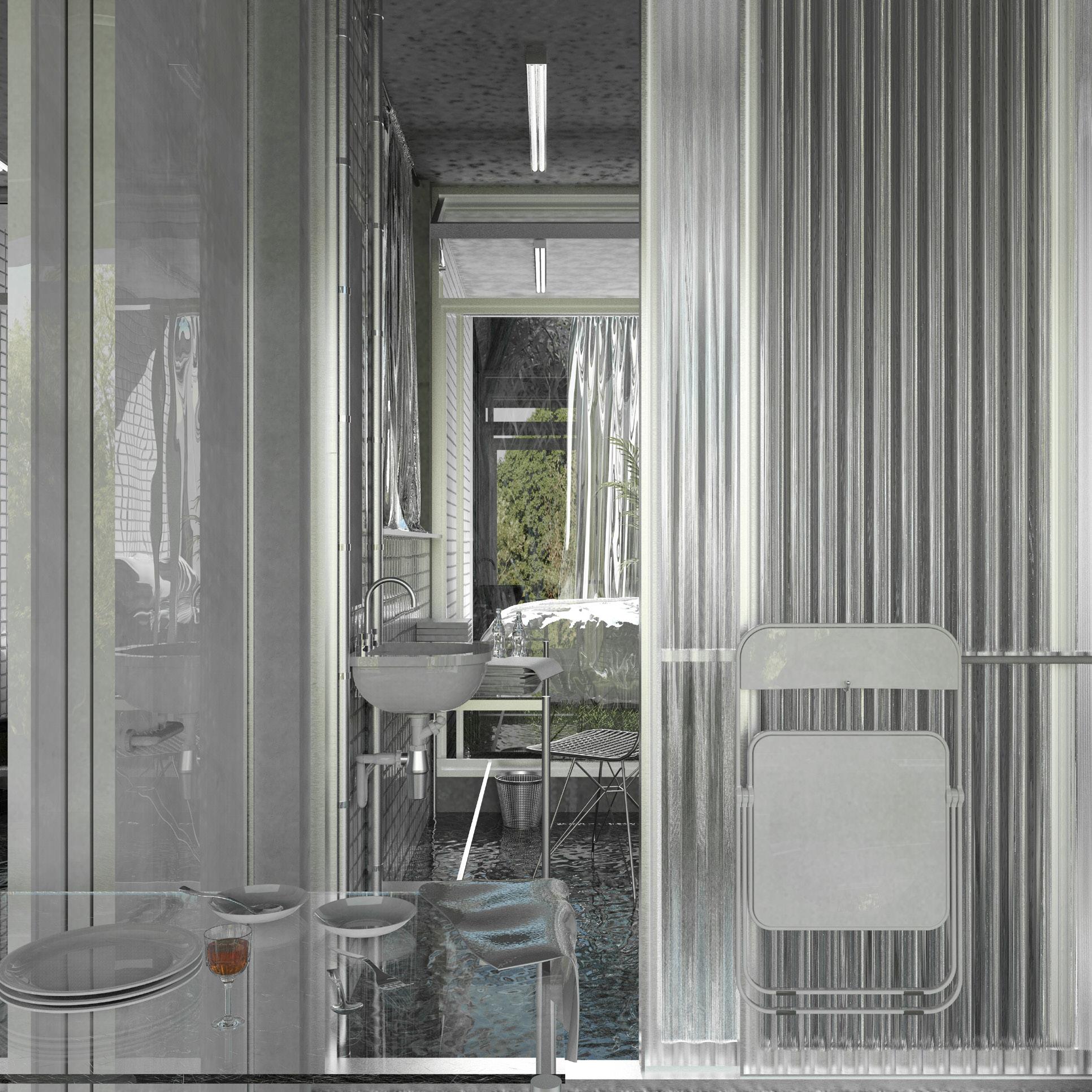 Throughout the process, a house without partition walls restricts all the elements important to the discourse of rendering the