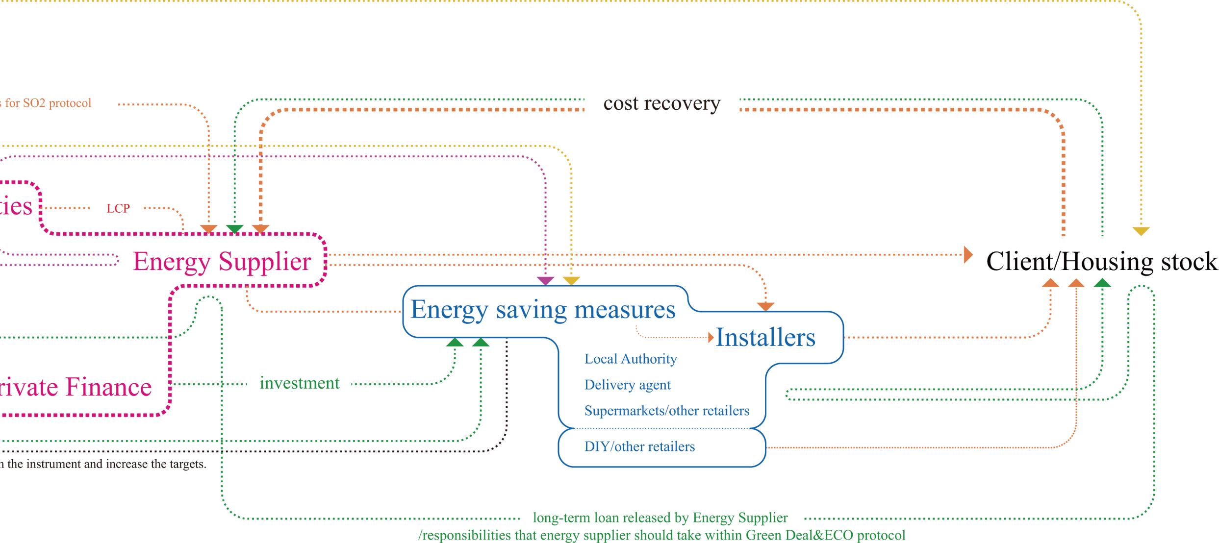 As stated in the building code, it takes 1 kWh to warm every 10 square meters within an average British house, but it is much higher than that in actual consumption. These energy products and the pipes, valves and metering technologies supporting them have contributed to a significant misunderstanding of the home as a space autonomous from society, thus maintaining an unequal spatial order in the city, creating a relationship of responsibility and the apportioning of benefits across the state, society, corporations and the customer.