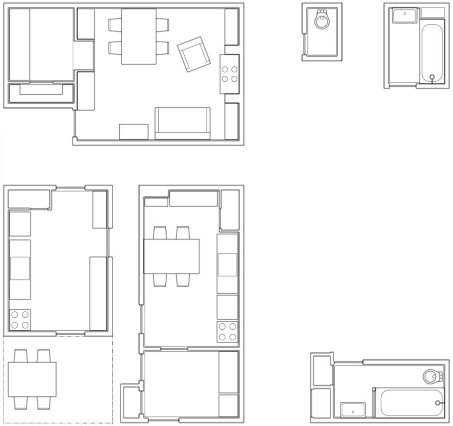 In this sense, the body and the confined space are always in a state of tension, with the body constantly wanting to break through the space that limits it. The spatial boundaries of the body can remain relatively stable only if (a) the two opposing bodily forces reach a temporary equilibrium, (b) the two bodies hesitate to reckon with each other and (c) their respective spaces can temporarily withstand the impact of the bodily forces. We have seen space repeatedly redraw its boundaries, as though the functions within a room have been gradually enriched over the past two centuries.