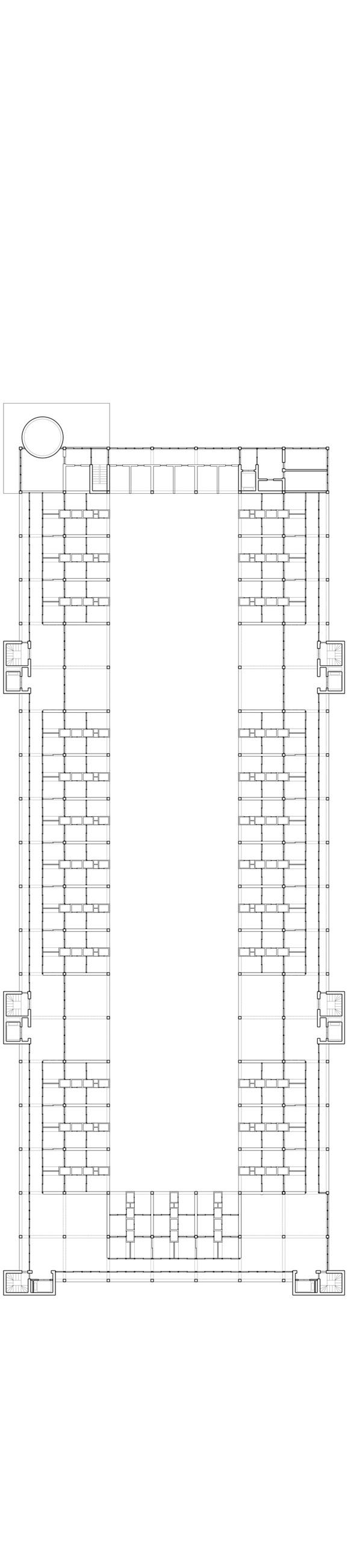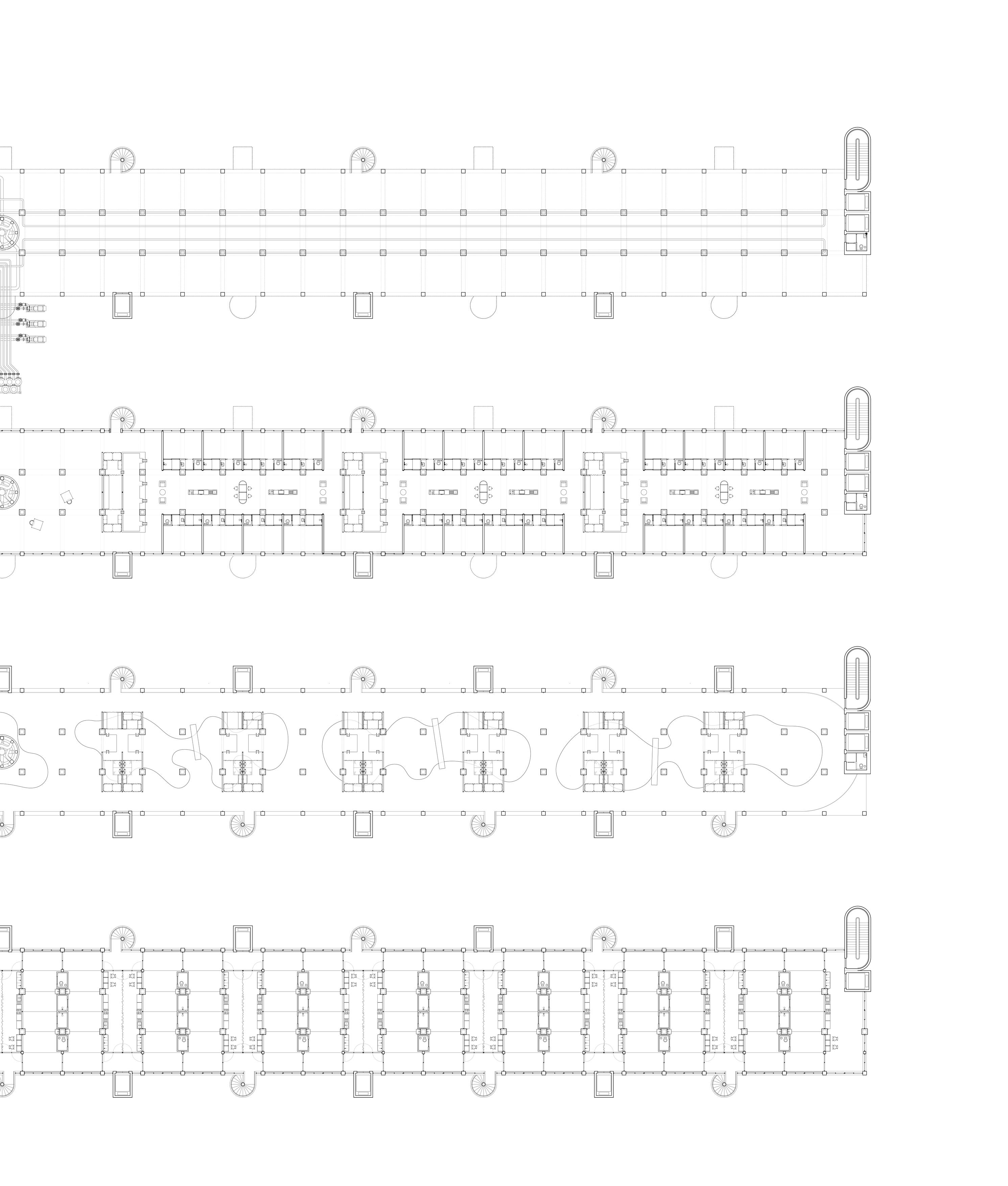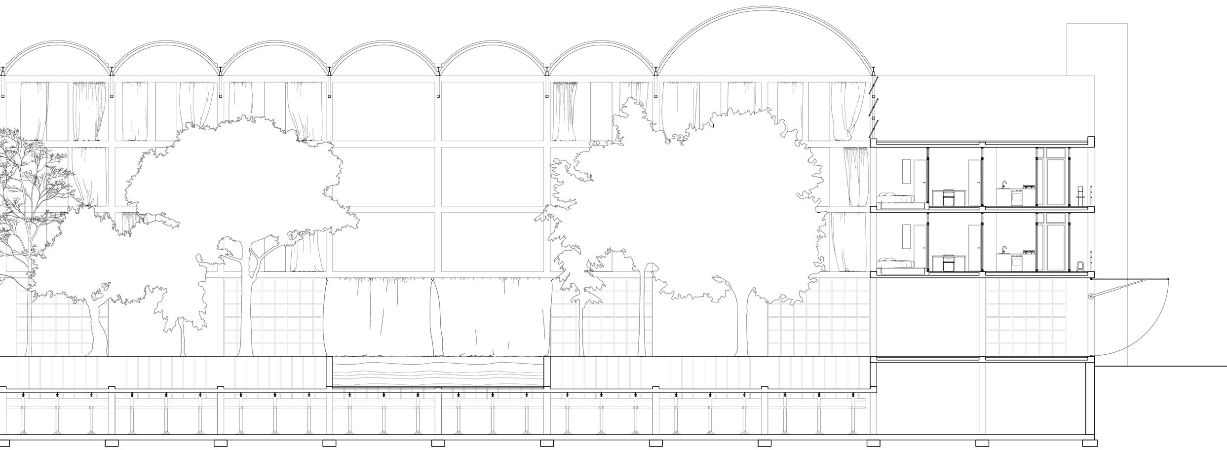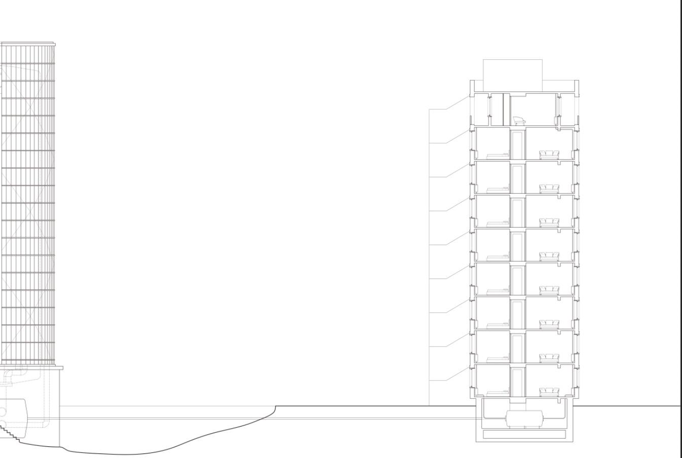 centre. Residents will pass by it before accessing the upper floors via open-air stairs or elevators. The public space surrounding the storage tank extends to the middle mezzanine.