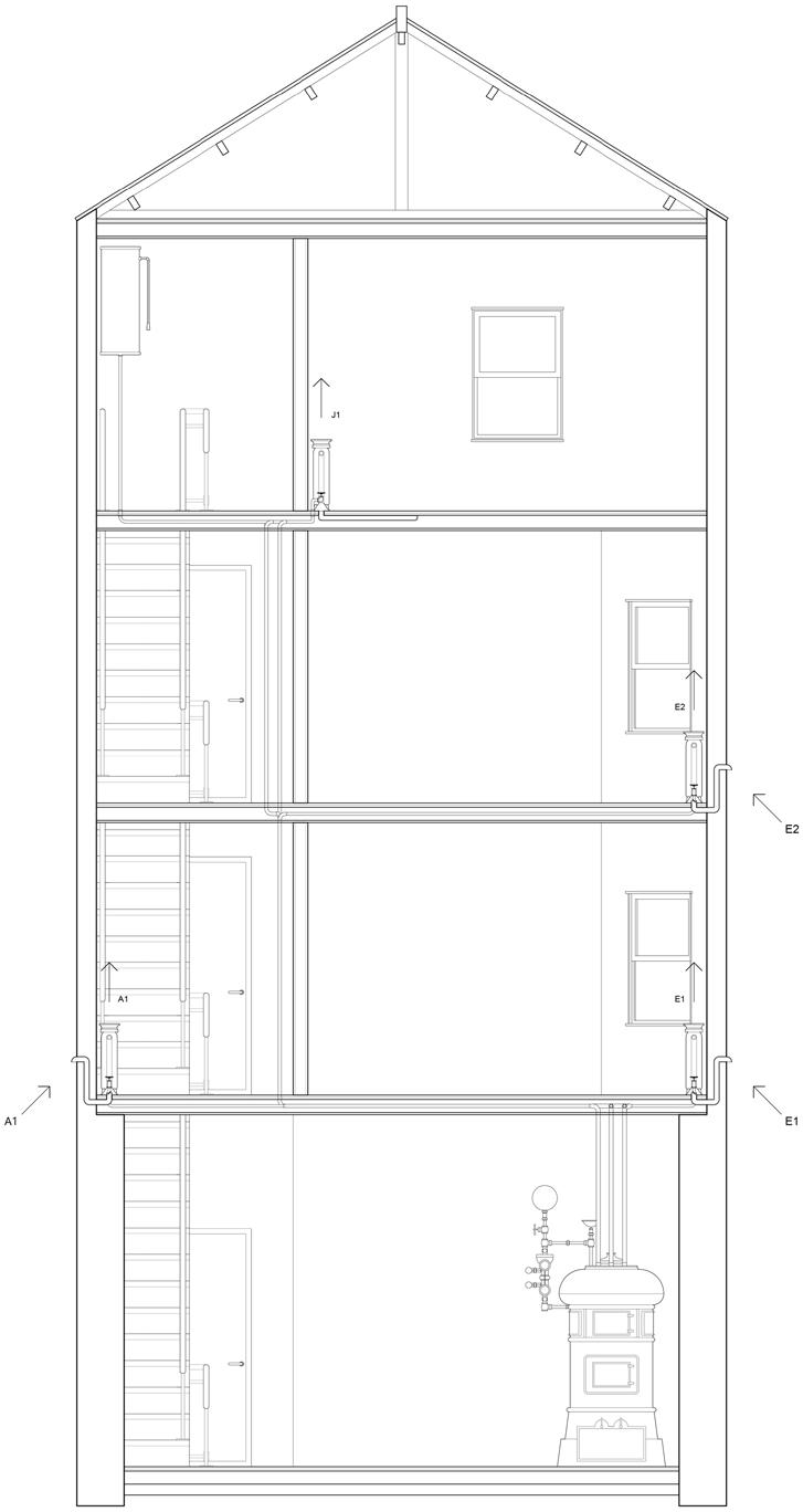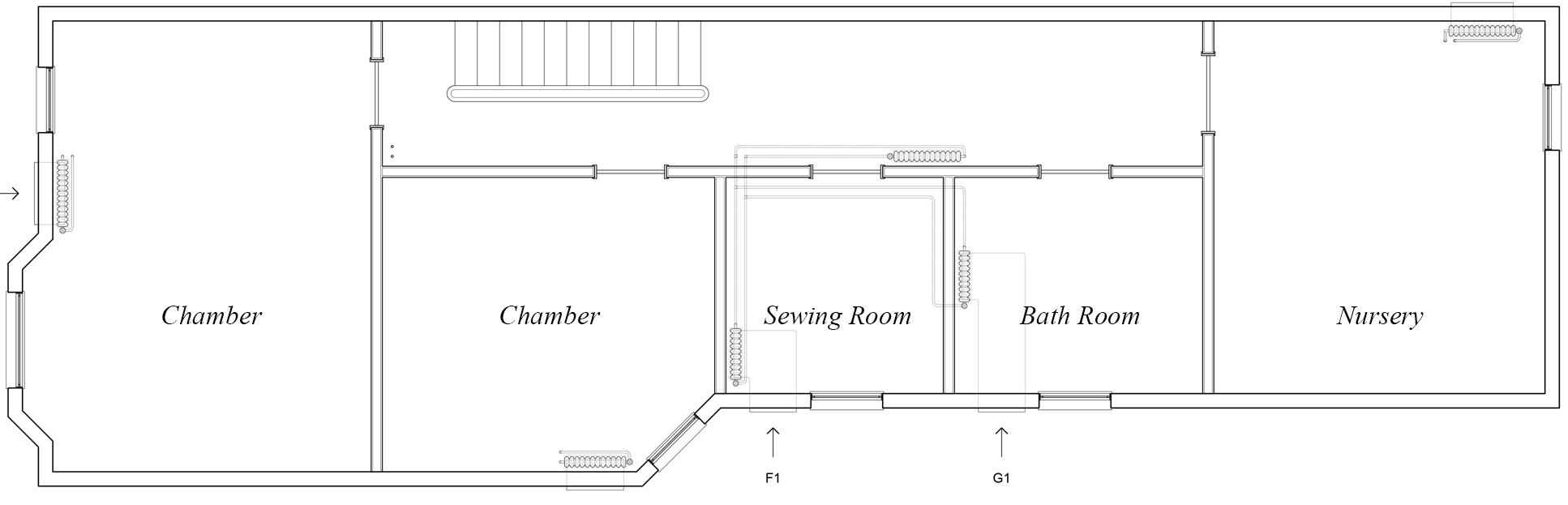 The case study in this sub-chapter depicts an early stage of the above-mentioned process. As the first working-class house within an urban area equipped with domestic central heating, it not only shows how the object of environmental control – the chimney fireplace – divides the spatial hierarchy within the home and provides the preconditions for
