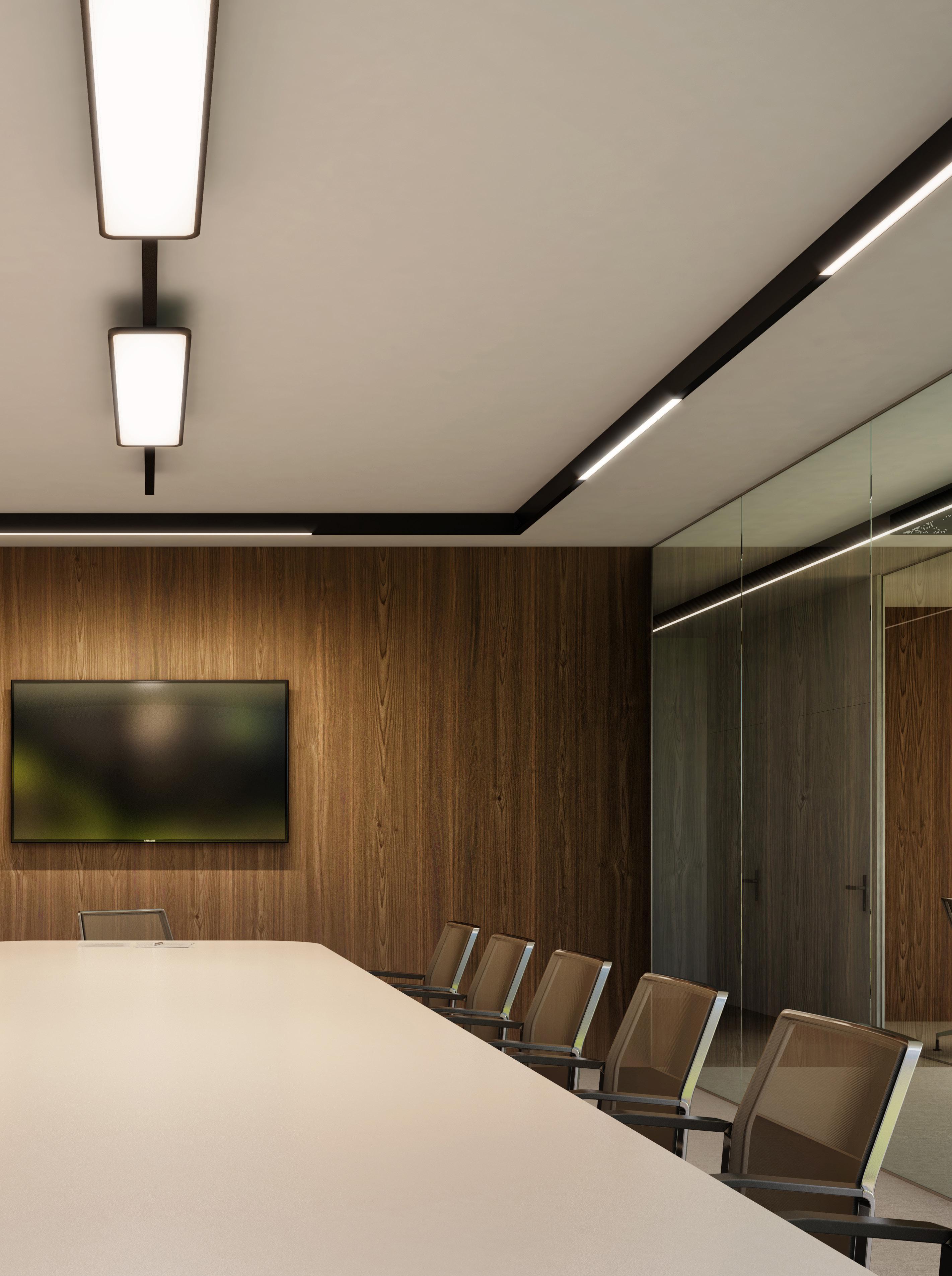 The revolutionary TUNABLE FOCUS technology from PROLICHT allows any combination of soft direct lighting (LEDLINE ), hard direct lighting (downlight spots) and indirect ceiling lighting.