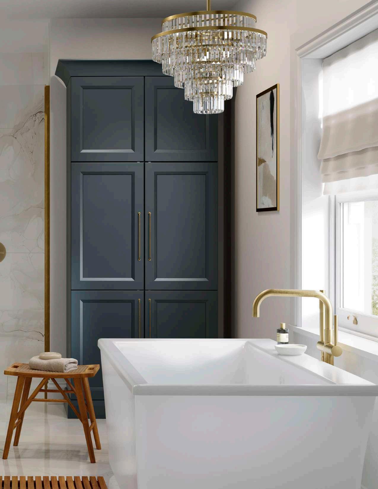 Featured in Starless painted finish, this striking bathroom makes a bold statement while simultaneously creating a serene mood with its nature-inspired palette.