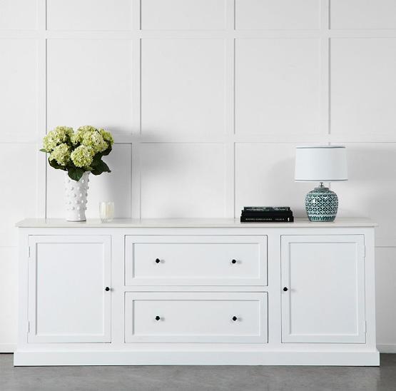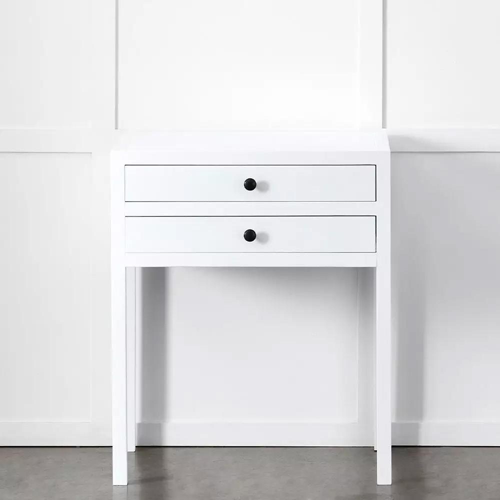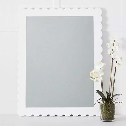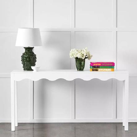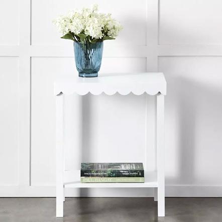 The charming Skyler range is beautifully detailed with a pretty scallop trim on each of the pieces. Delicately proportioned to fit into any space, the range includes a console table, mirror, and a bedside table, all carefully crafted from pine and painted white, and a bedside table painted a striking bayleaf green.