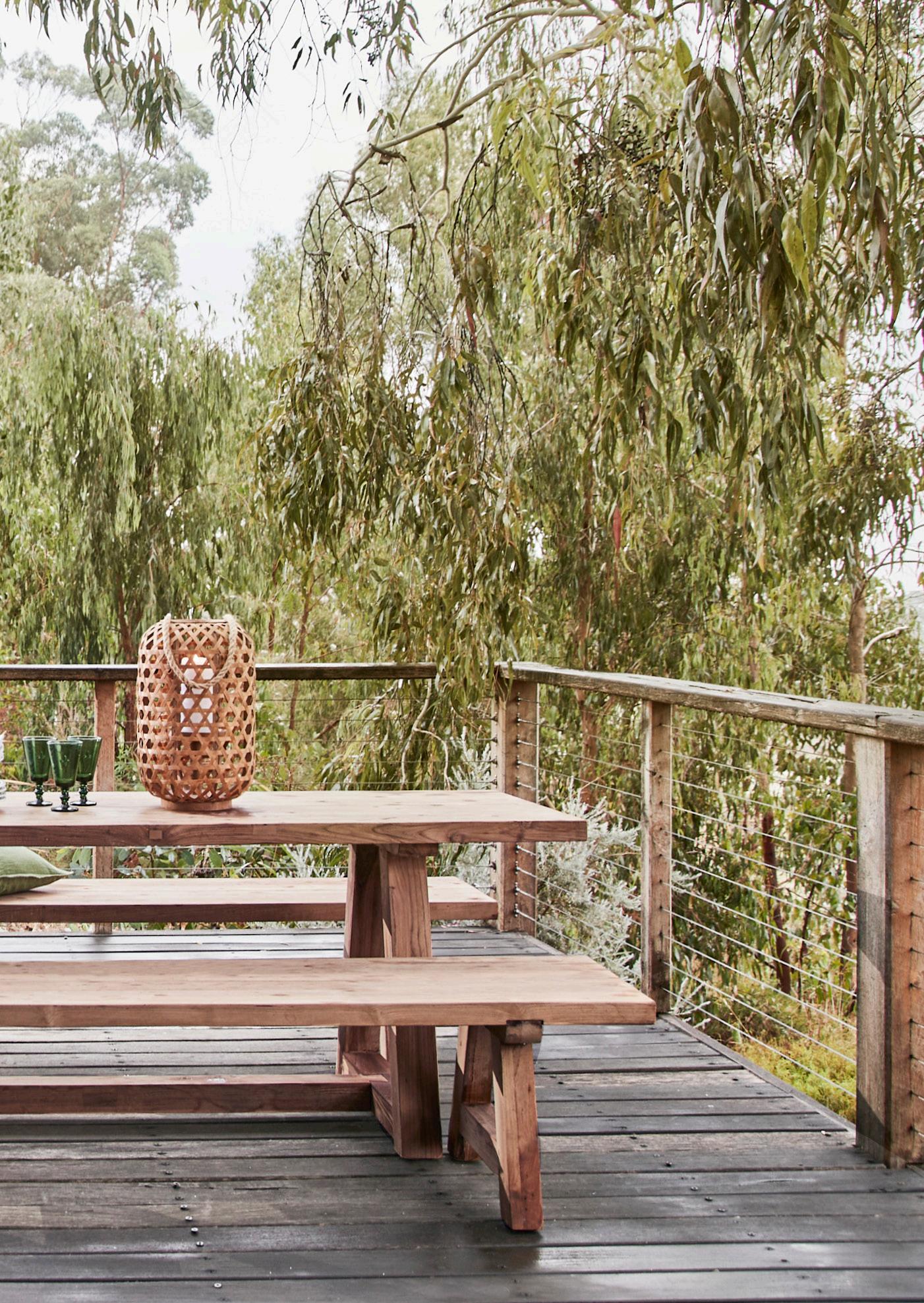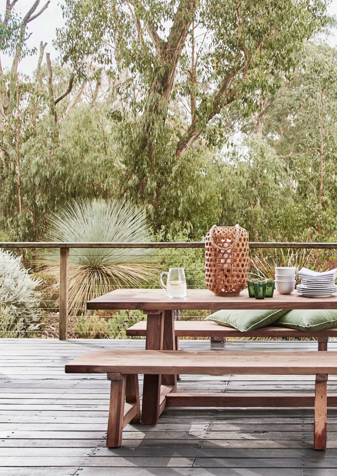 A touch of green on the table is the perfect choice for outdoor dining any time of the year but when leaves have fallen, they make an even bigger statement.Porto Table, $3499 | Java Bench, $1699 | Polly Lantern, $69.95 | Fleur de Lys Glassware, from $12.95 | Voler Glass Jug, $24.95 | Lauren Dinnerware, from $5.95 | Hayman Napkin, $9.95 | Nisha Cushion, $99.95 | Julian Hurricane, $39.95 | Kubu Umbrella Basket, $109.95 | Extra Large Gruyere Flowerpot, $89.95