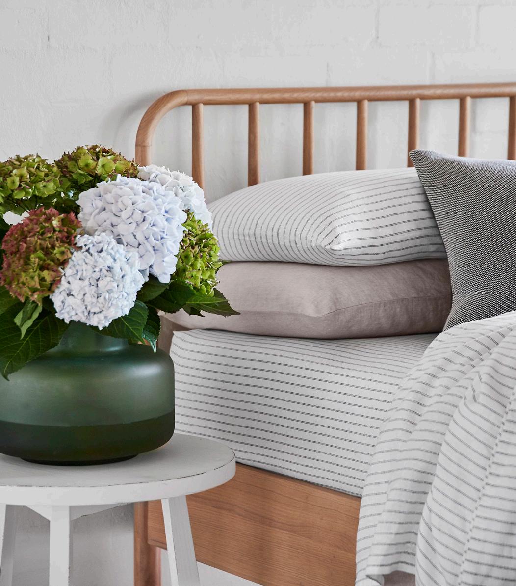 If you have a striped and plain quilt cover – and a mix of sheets and pillowcases in different colours, you’ll have endless possibilities to choose from each time you make your bed.