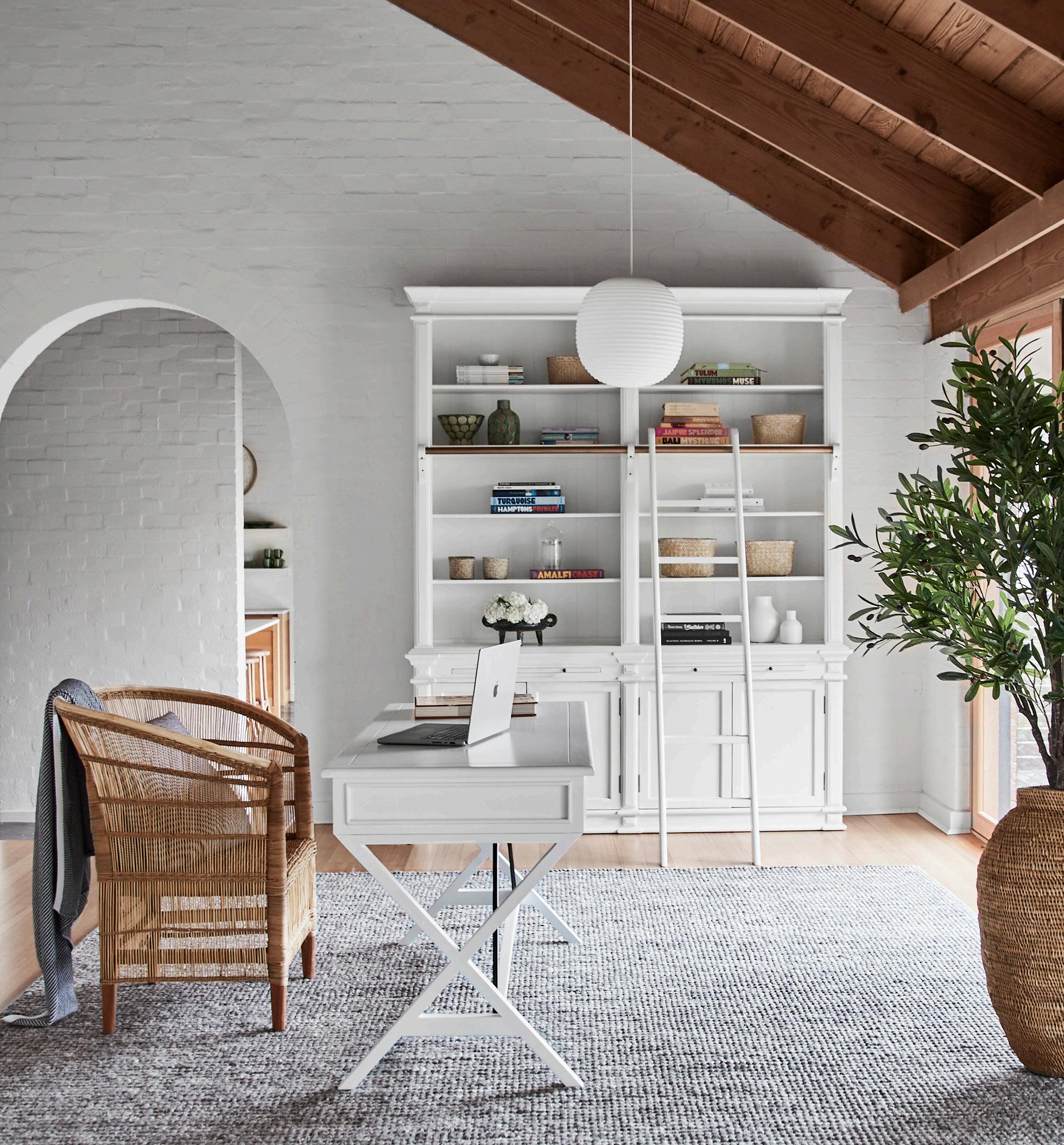 A home office is elevated to another level with perfect white furniture pieces, ample natural light, and minimal clutter. Add personal touches to make the area your own and create a space that is comfortable, functional, and inspiring.