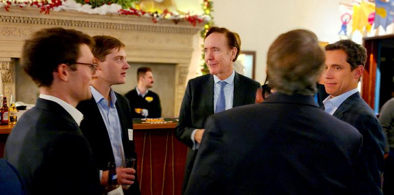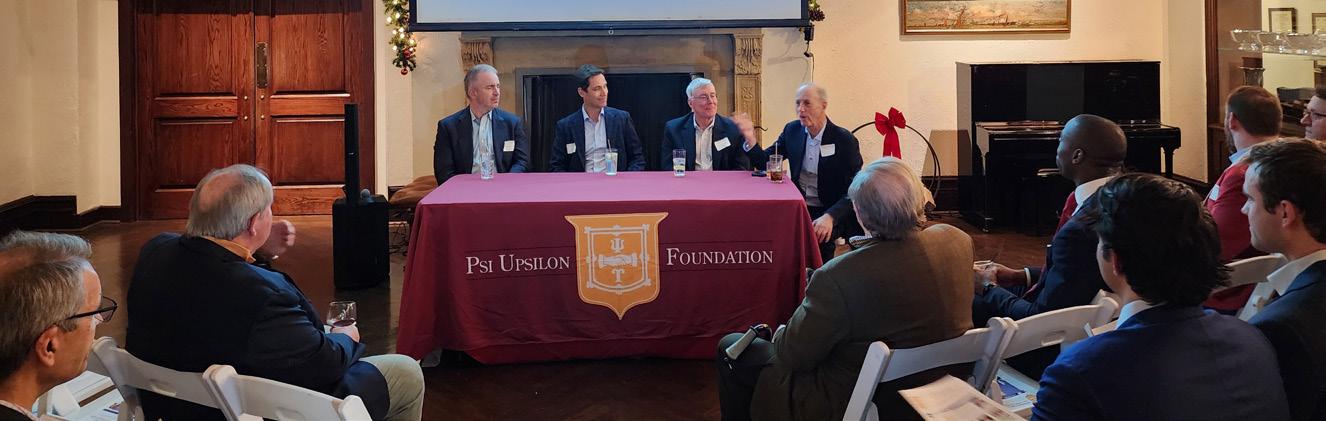 December 7th, 2023, the 4th Annual Gilrane Economic Symposium was held in Greenwich, CT, to much acclaim. Andy Serwer, Kappa ‘81 (Bowdoin) did an insightful job moderating distinguished panelists Rich Dell’Aquila, Psi ’98 (Hamilton)Managing Director at Brookside Equity Partners, Lawrence Rakers, Omicron ‘86 (Illinois)Mutual Fund Manger at Fidelity Investments, and John Thaler, Omega ‘97 (Chicago) - Founder and Portfolio Manager at JAT Capital Management, L.P. . The panel discussed expectations for the 2024 economic landscape. The annual speaker panel, endowed in Brother Gilrane’s honor, was followed by two entrepreneurial pitches courtesy of the FishFund. Speakers representing their companies presented and took rapid fire questions from the audience. The paid event brought together brothers from around the country. Next year’s GES and FishFund Venture Presentations are scheduled for December 5th, 2024, at the Indian Harbor Yacht Club, Greenwich, CT.