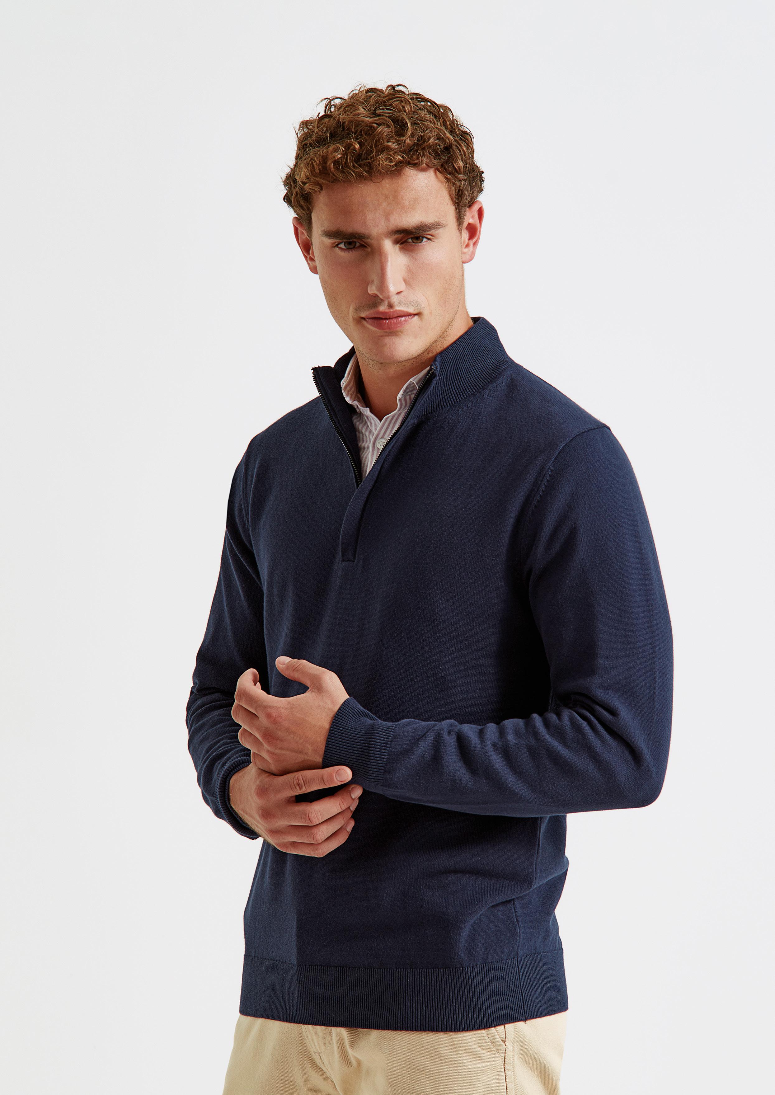 Embrace a modern silhouette with the cotton blend ¼ zip sweater. A perfect piece for between-seasons layering.