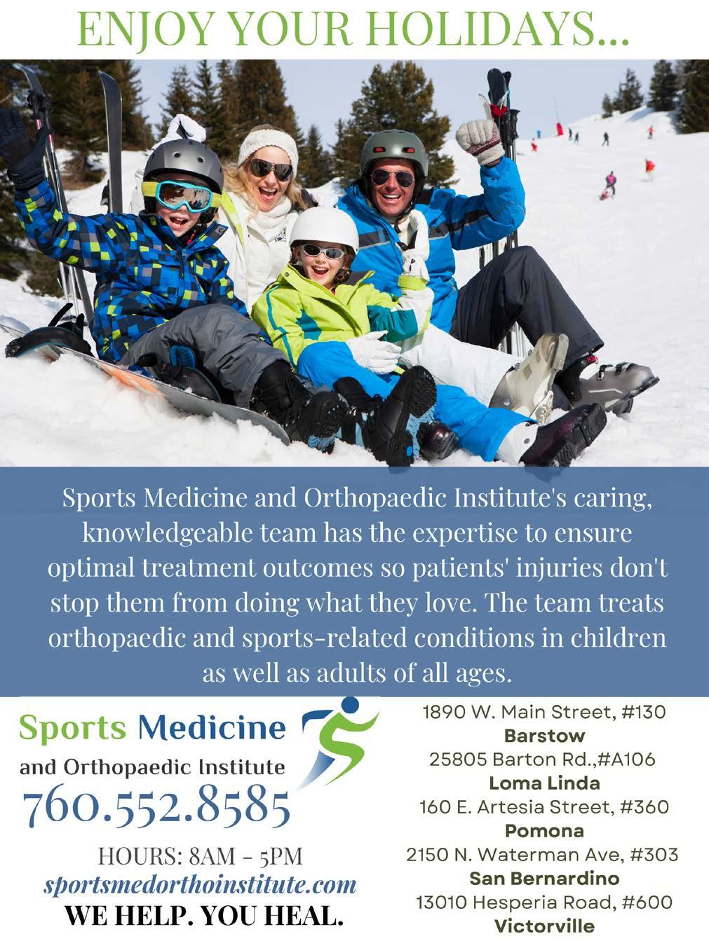 23 PULSE OF THE HIGH DESERT December 2022 Holidays & A HEALTHY NEW YEAR HAPPY Heritage Victor Valley Medical Group is extending “A Gift of Wellness”. This gift is an opportunity for you to schedule your appointment with our offices to discuss a wellness plan for your health and for your family. Thank you for being a valued patient in our office. Remember as we close the Year 2022, it’s important to use this gift to a greater, better, healthier you! Happiest of Holidays, 800.655.9999 hvvmg.com members@hvvmg.com