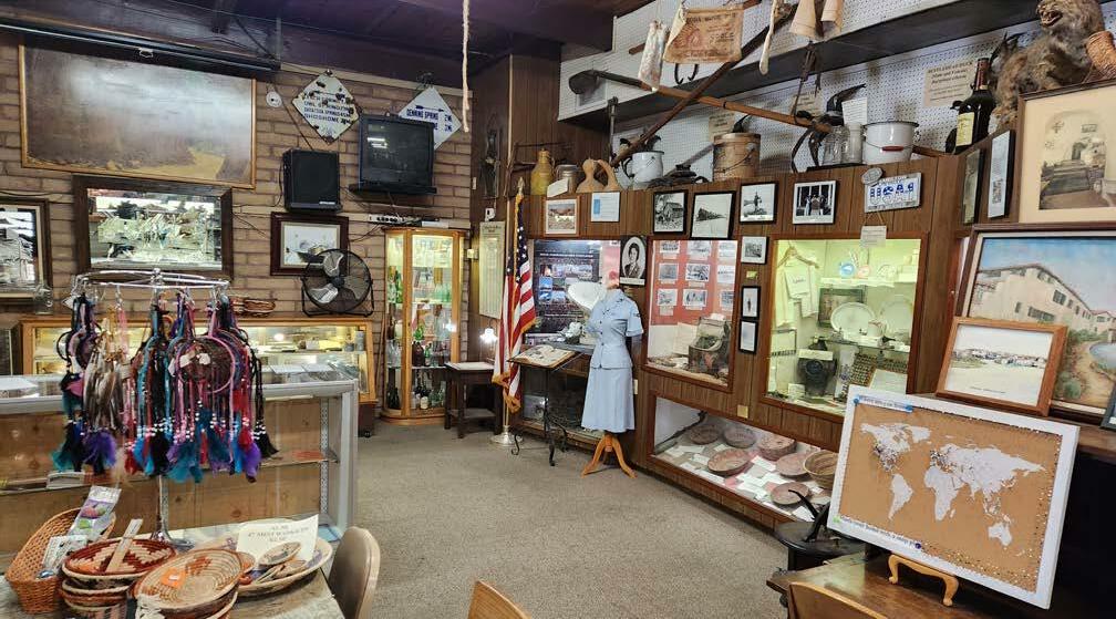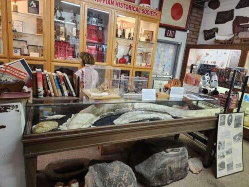 SINCE THEN, THE MUSEUM ASSOCIATION has become independent and self-supporting. It is staffed entirely by volunteers. The association members I met while there were very welcoming and helpful. The museum building is now over 4,000 square feet and includes a gift shop area and book store, with nearly five hundred titles. They could really use twice the space as the museum is bulging at the seams with artifacts. Artifacts were largely donated by generous local residents. The walls are lined with display cases, and more artifacts are displayed on top.