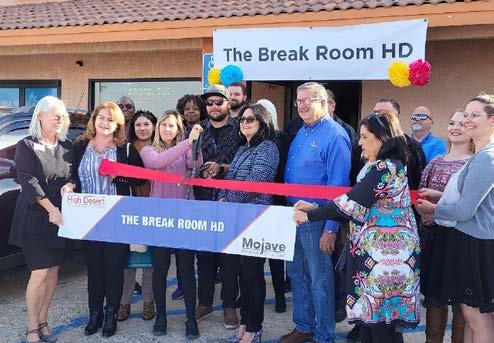 EMBERS OF THE GREATER HIGH DESERT CHAMBER rallied behind ribbon-cutting ceremony of The Break Room HD, owned and operated by Chelsea LaGrange and Michael Rasberry, during its grand opening. Inside the smash studio, a large number of dignitaries from area chambers and representatives from county and regional government offices, enjoyed destressing by bashing wine glasses with a bat.