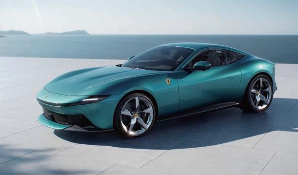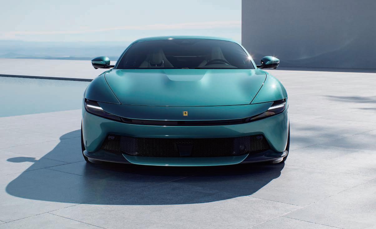 色彩是本次設計的核心元素之一。首波亮相的 Amalfi 採 用名為 Verde Mistral 的全新綠松石藍色,這款車漆根據 自然光與車身曲面折射,展現不同層次的光影變化。品 牌並沒有選擇鮮紅、消光黑或電光色等當代車壇常見顏