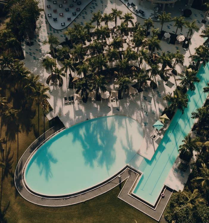 SPA 空間佔地寬廣,是此次翻新中最令人矚目 的部分之一。這裡不以繁複設計吸引目光,反 而讓身體自然放鬆於空間之中。光影、木香與 天然石材的質地,共同營造出一種來自山林的 靜謐氣息。療程以當地草本植物與自然精油為 基礎,結合傳統療癒技法與現代感官引導,讓 旅人重新感受身體節奏與環境連結。在水池、 蒸氣室與芳療空間間轉換,彷彿進行一場與自 然和自我對話的過程。這樣的設計語彙,不強 調外在的聲光效果,而是放大內在的沈澱需 求。這裡的靜,並非空無,而是一種從四周自 然中長出來的安定感。