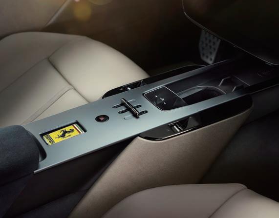Amalfi 內裝設計為了呼應外觀的純粹主張,取消了中央多媒 體螢幕,將所有駕駛資訊集中在儀錶與方向盤上,讓駕駛視線 始終專注於前方道路。副駕座也配備專屬顯示介面,提升乘客 與駕馭節奏的連結感。大量真皮、鋁合金與碳纖維的運用,讓 座艙在豪華與運動之間取得完美平衡。椅背包覆性強,扶手與 中控布局簡潔,座艙彷彿被設計成車身線條的延伸,使人一坐 進車內便與車身融為一體。