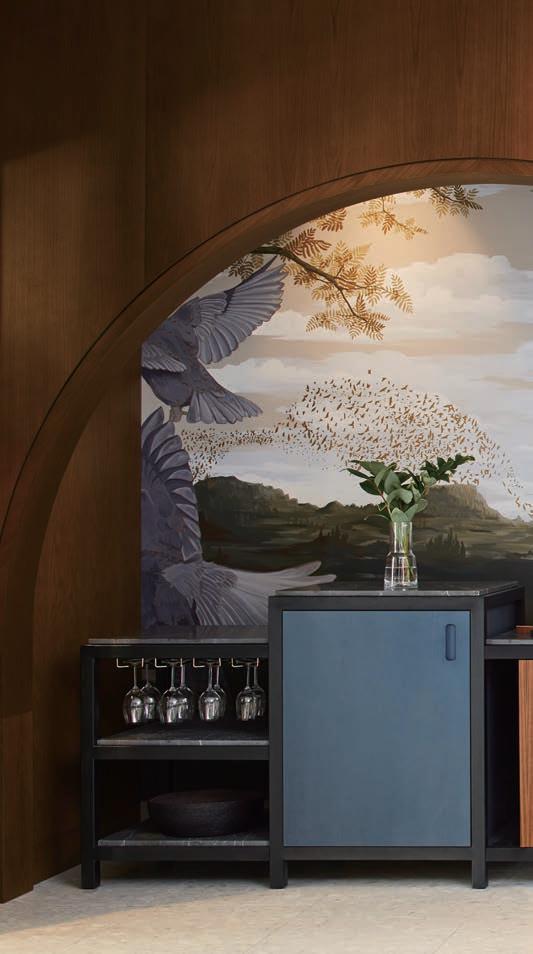 餐廳空間同樣迎來改造與升級,整體風格延續 飯店一貫的簡淨美學,但料理的靈魂依然深植 於這片土地。主廚與在地小農合作,選用當地 乳製品、野菜、穀物與香草為基底,打造出一 道道反映季節節氣的餐點。無論是以慢火熬煮 的手工湯品,或結合創意與傳統的義式主菜, 都讓人透過味覺理解山區生活的節奏。用餐空 間中聽不見喧鬧的碰杯聲,而是一種不疾不徐 的秩序。這裡的餐桌不追求視覺噱頭,也不為 話題設計盤飾,而是讓每一道菜都如同日記的 一頁,記錄著廚師、山野與時間的共感。