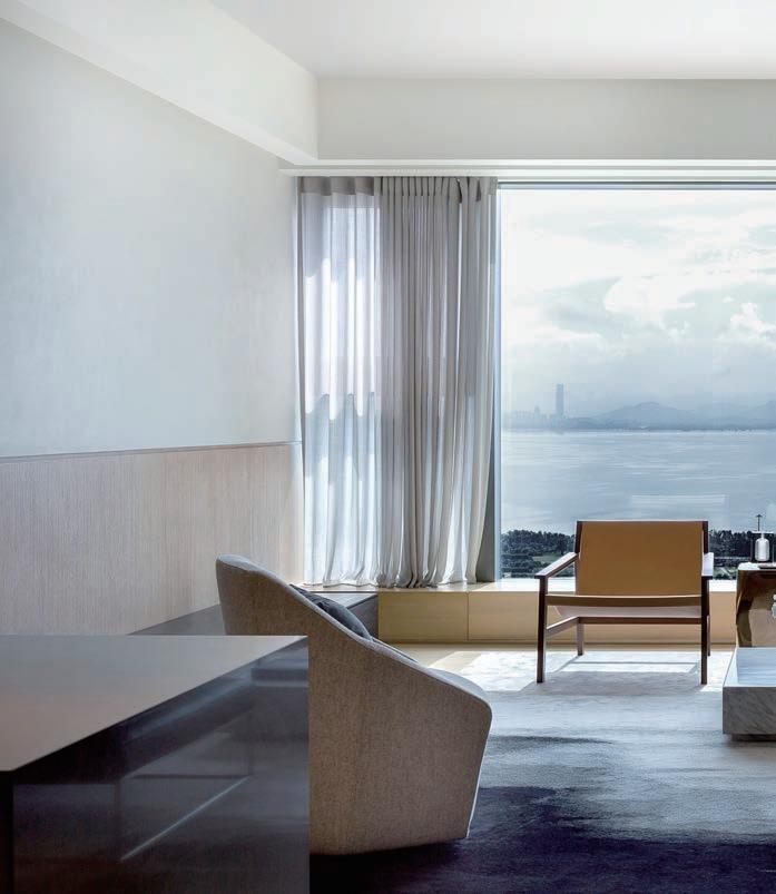 Gathy 延續了他對 Aman 風格的詮釋, 克制、平衡、富有靈魂。他讓山的呼吸、 光的移動、材質的觸感,逐一說話。房 內的佈局與色調呼應著四季與地形的變 化,不刻意追求視覺的驚奇,而是讓人 安心停留。