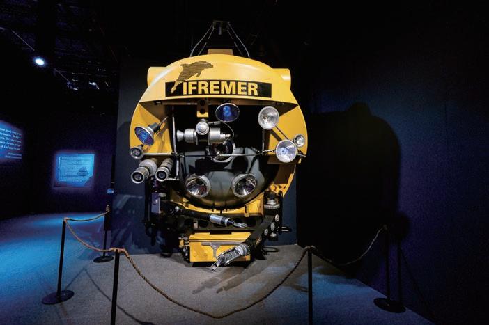除實體展品外,此次展覽更引入虛擬實境 (VR)體驗,讓觀眾以第一人稱視角「潛入」 鐵達尼號船骸。這段沉浸式探索由專業潛水團 隊拍攝重建,觀眾可看到如今海底沉睡的殘骸 結構,包括塌陷的船體、裸露的鋼架與附著海 洋生物的艙門。虛擬旅程讓觀眾仿佛能直視災 難後的現場,不再只是想像歷史,而是親身體 驗其存在的痕跡。對許多觀眾而言,這是一場 近乎朝聖的過程。
